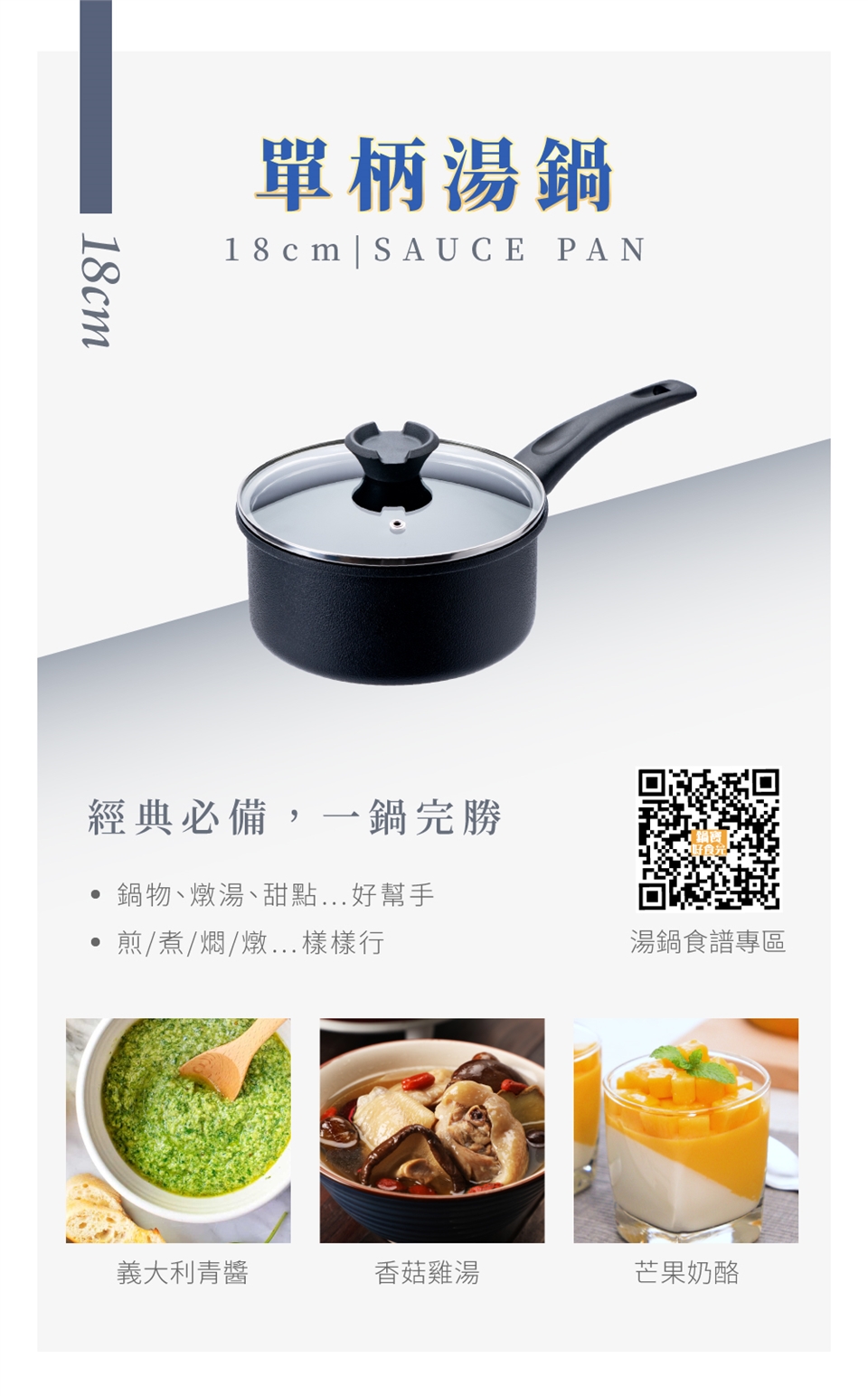 品名:鍋寶御璽陶瓷不沾湯鍋18cm(附蓋)