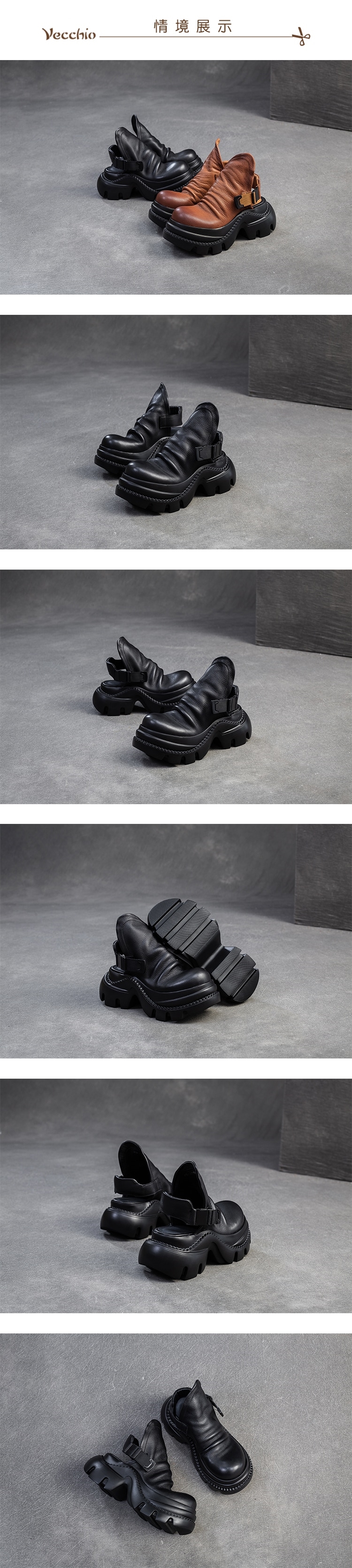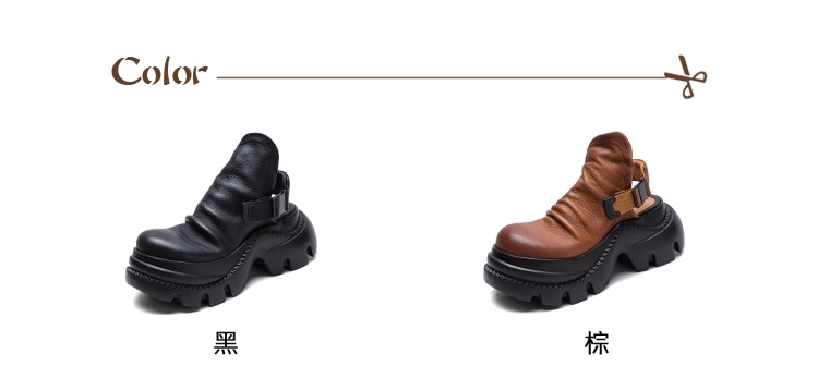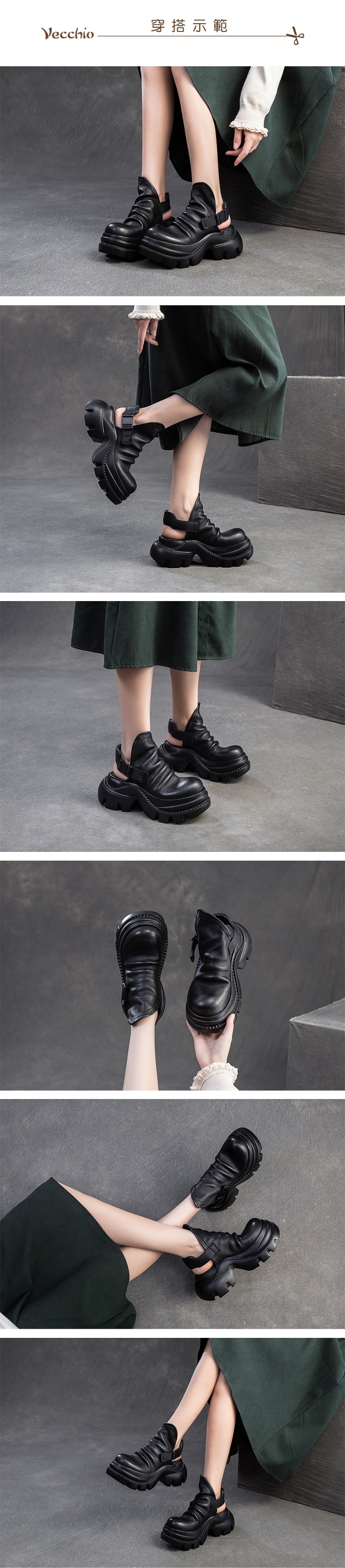 【VECCHIO】全真皮褶皺厚底包頭涼鞋/全真皮頭層牛皮復古褶皺時尚厚底包頭涼鞋 女鞋 黑