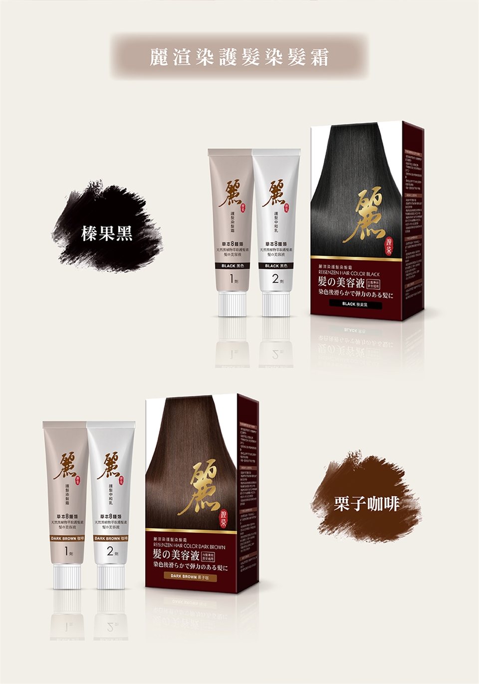 ●將1劑(護髮染髮霜)、2劑(護髮中和乳)依1:1比例擠在染髮梳上,即可進行染髮程序。
