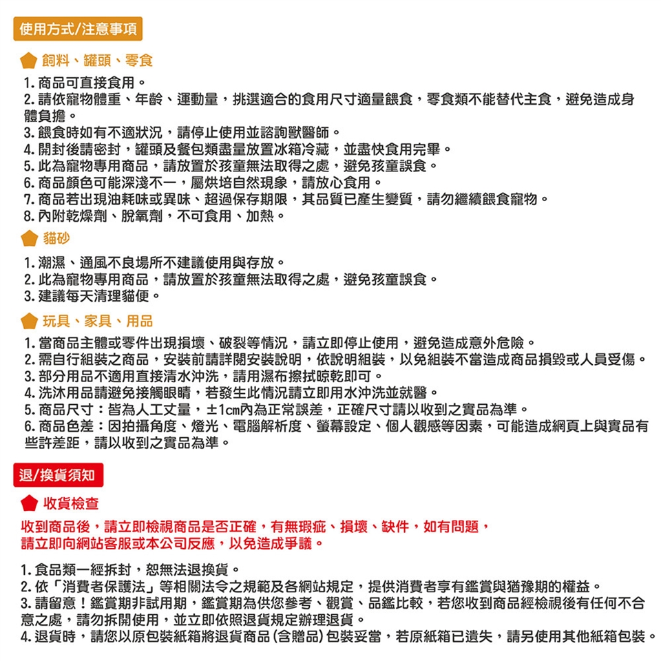 5.此為寵物專用商品,請放置於孩童無法取得之處,避免孩童誤食