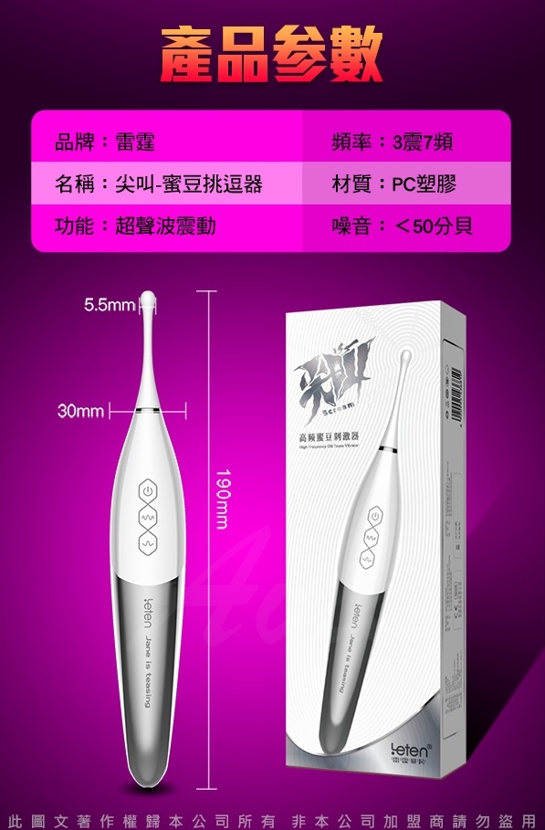.主商品:LETEN 尖叫 超聲波震動 蜜豆挑逗刺激器