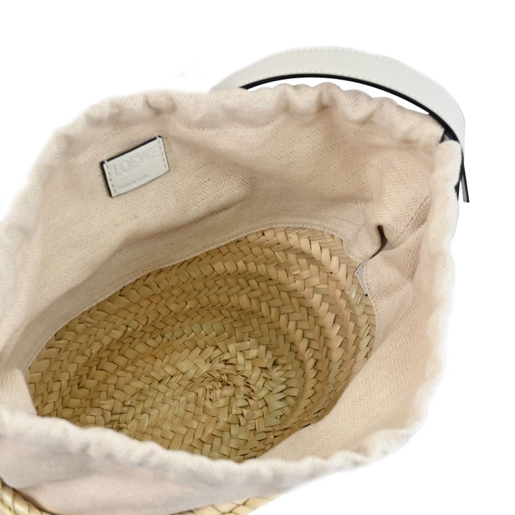 LOEWE 專櫃熱賣款,LOEWE Drawstring bucket系列,採用棕梠葉編織而成,搭配品牌徽章LOGO小牛皮裝飾,上方拼接帆布束口設計,精緻獨特又顯眼,抽繩束口開口,內可收納長夾、保溫瓶及摺疊傘等隨身物品,大小適中,可肩背、斜背使用,獨特品牌造型,外出出遊或購物皆合適,簡潔俐落的設計,在舉手投足都展現自信魅力。