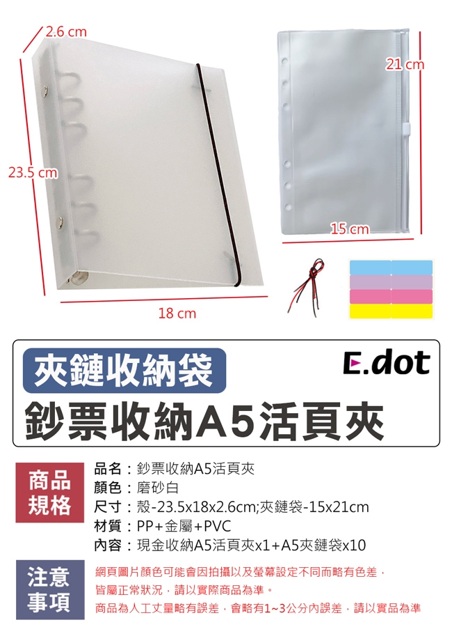 ◆ 內容:現金收納A5活頁夾x1+A5夾鏈袋x10