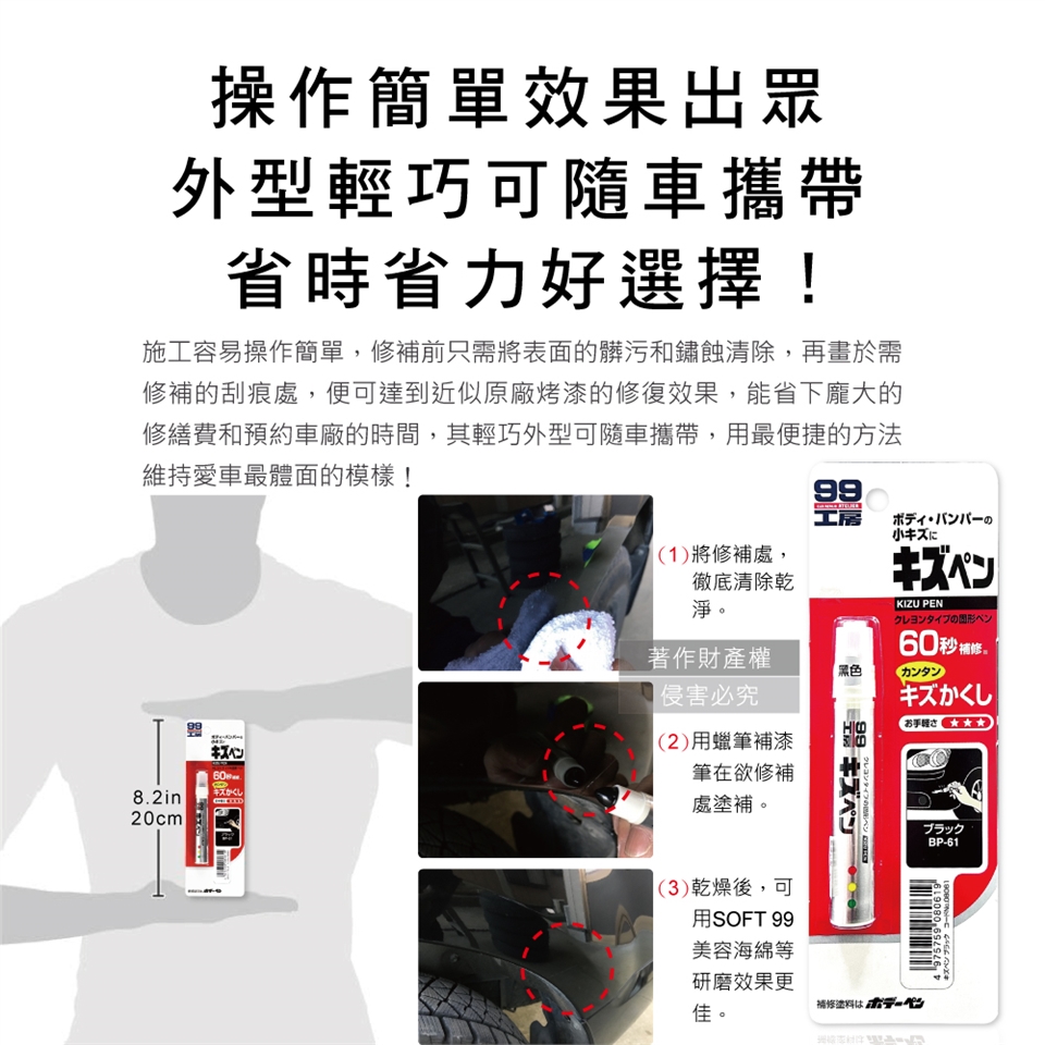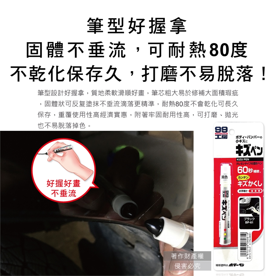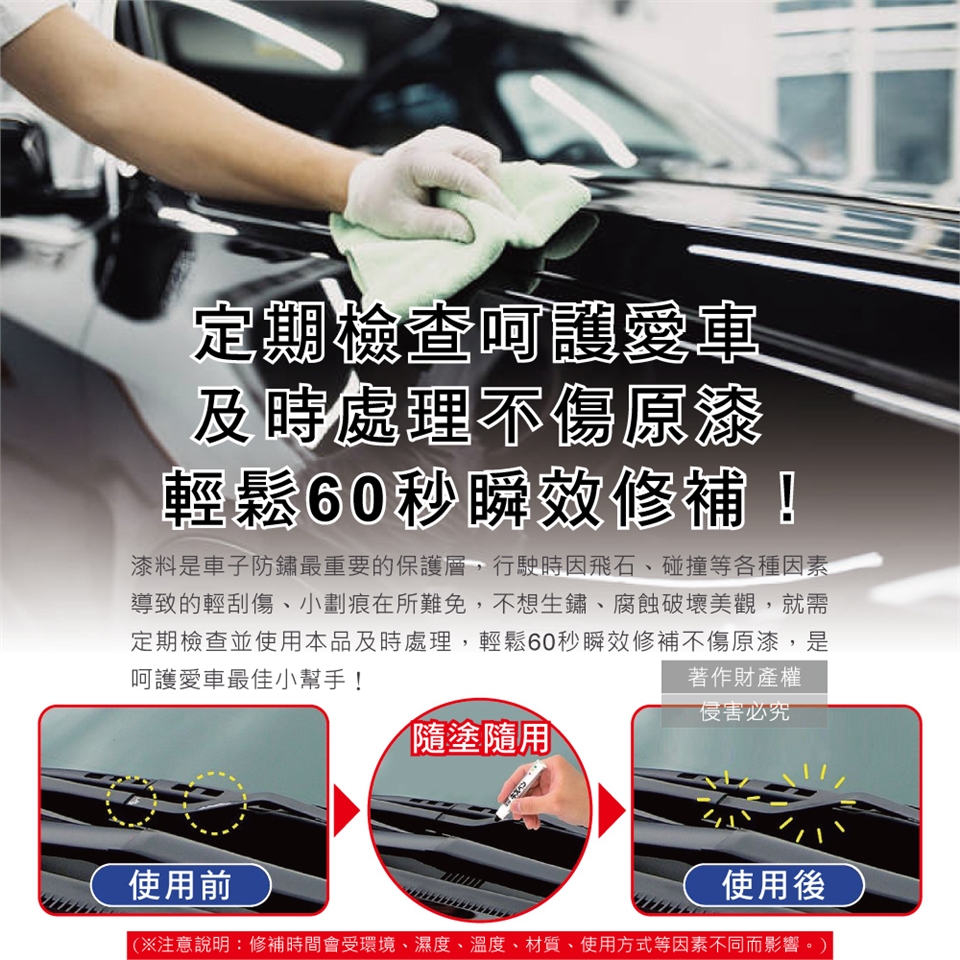 (11)本品是將傷痕遮蓋,防止生鏽之補漆筆,跟板金或噴漆修補的效果不同。