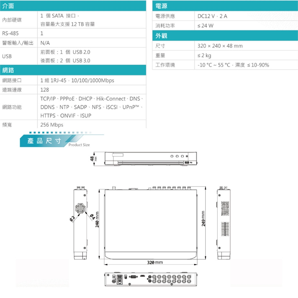 最多支援 24路 IP 攝影機輸入,每路最高6MP