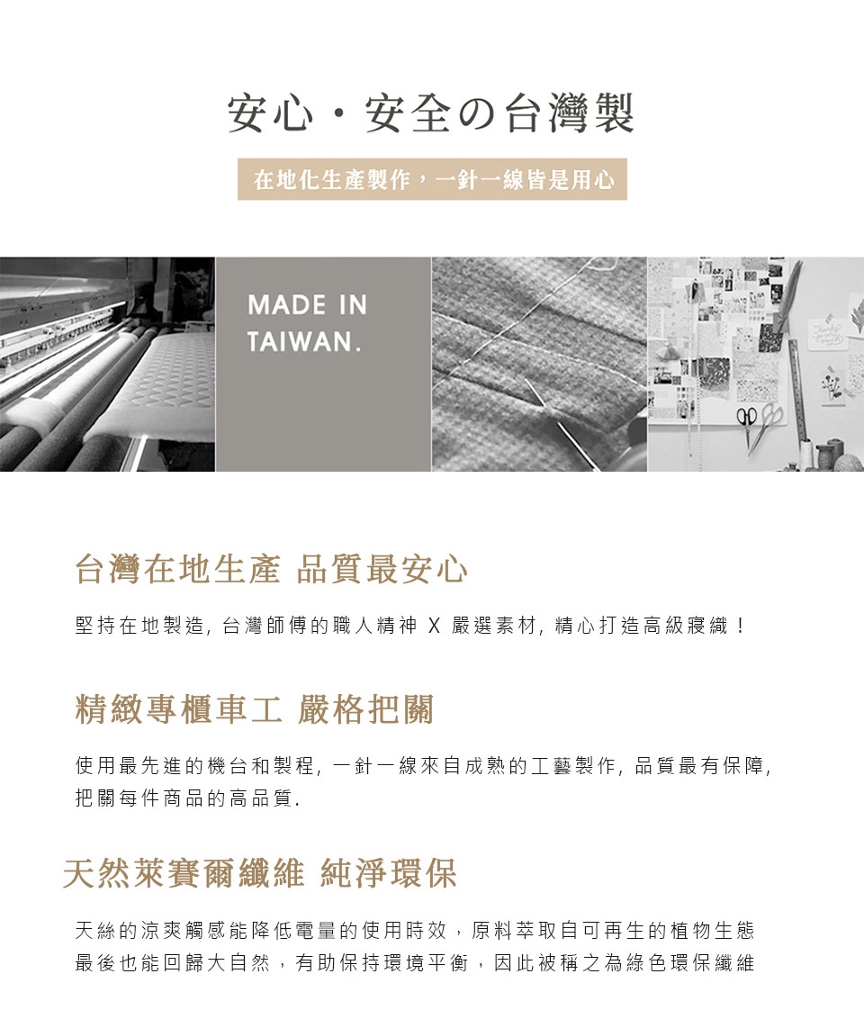 台灣師傅的職人精神 x 嚴選素材, 精心打造高級寢織!