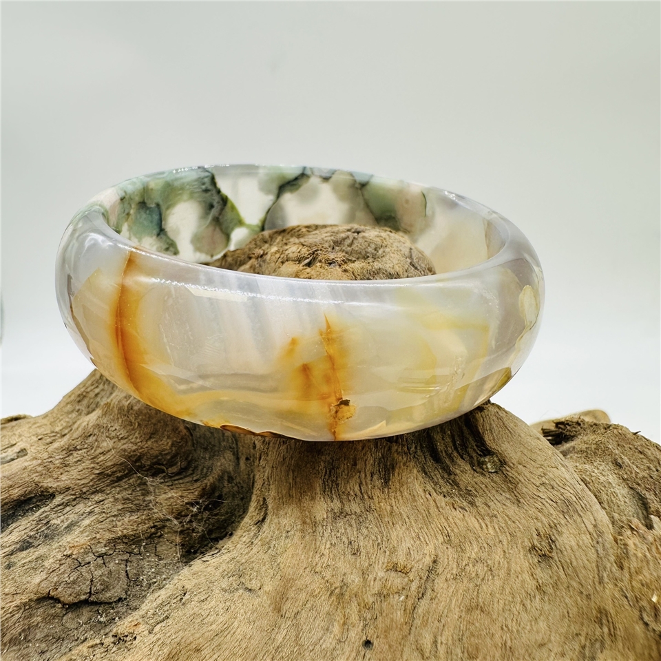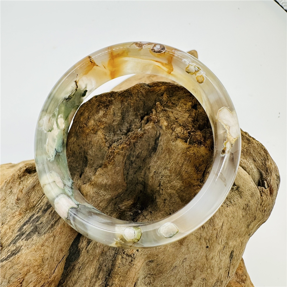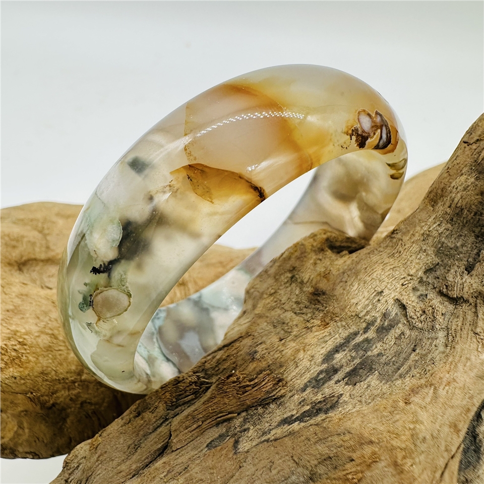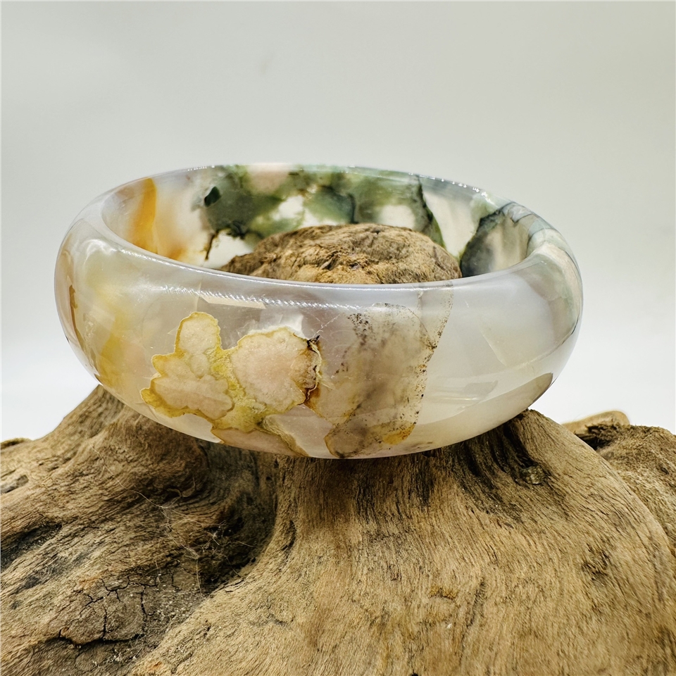 櫻花瑪瑙,又稱為櫻花玉髓(Cherry Blossom Agate),是一種來自非洲馬達加斯加的珍稀寶石。它因內含獨特的白色或粉色礦物花紋,宛如朵朵櫻花綻放在透亮的瑪瑙之中,因此得名「櫻花瑪瑙」。每一只手鐲都是大自然的藝術品,獨一無二,專屬於你的美麗與優雅。