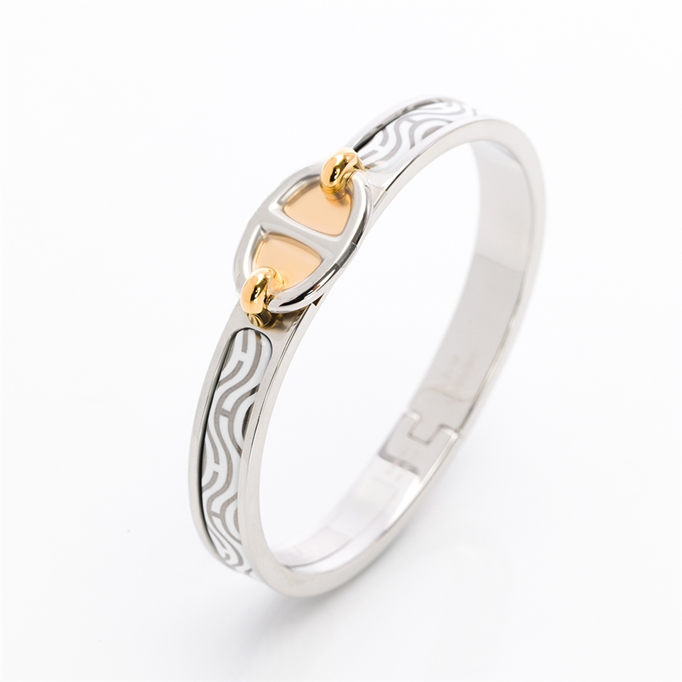 Hermes Mini Clic Chaine d'Ancre手環(白灰條紋/銀)(PM) (H200003FPC5)