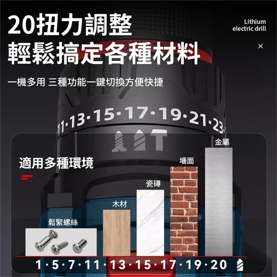 起擰螺絲【1~6檔】 木材打孔【7~12檔】 玻璃鑽孔【9~13】