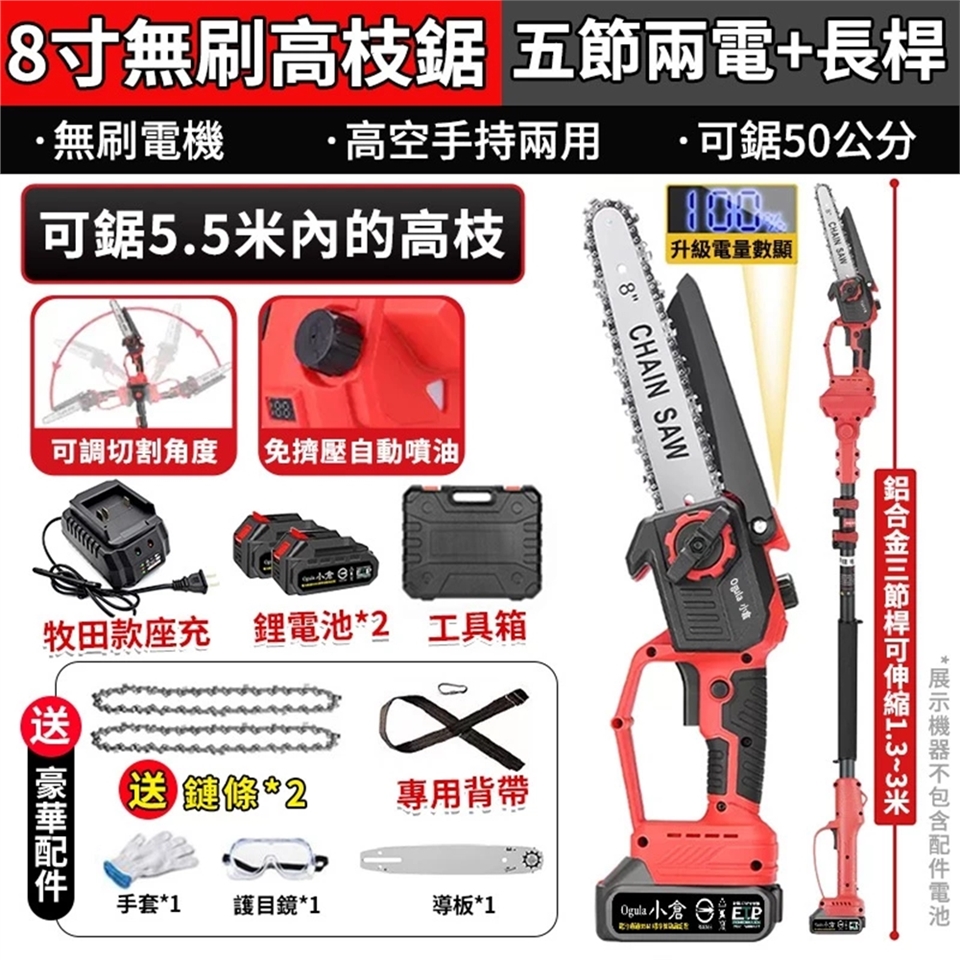 名稱:8寸免安裝無刷數顯高枝鋸
