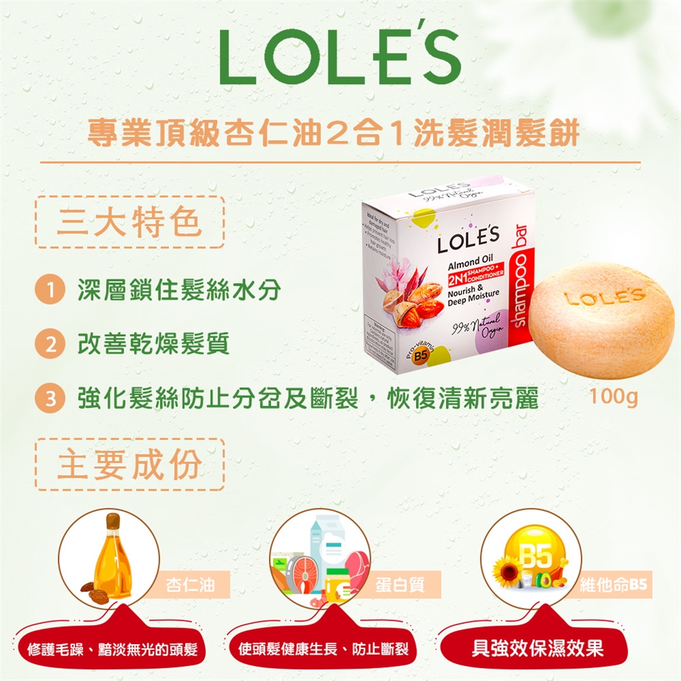 雙手沾濕,取洗髮潤髮餅於掌心搓揉起泡後輕輕按摩頭部,數分鐘後即可輕鬆洗淨。