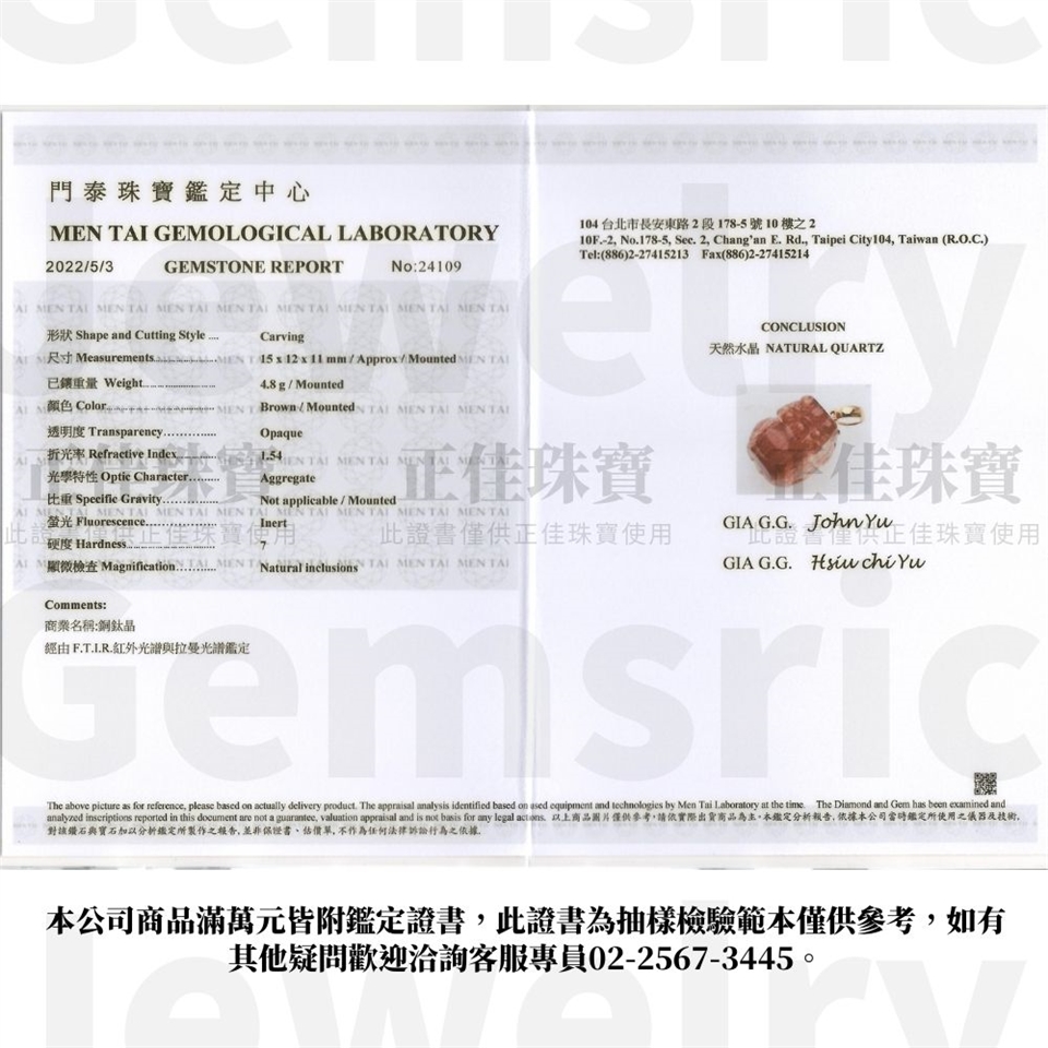 所有商品出貨時均錄影包裝出貨,並會附上正佳珠寶開立的商品保證書(正佳珠寶擔保品質商品),滿萬元商品均贈送第三方檢驗證書,未滿萬元商品均抽樣檢驗為天然商品並上架,無需擔憂商品品質真偽可安心選購。