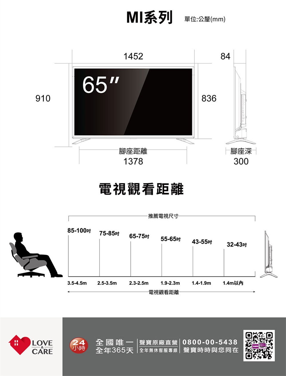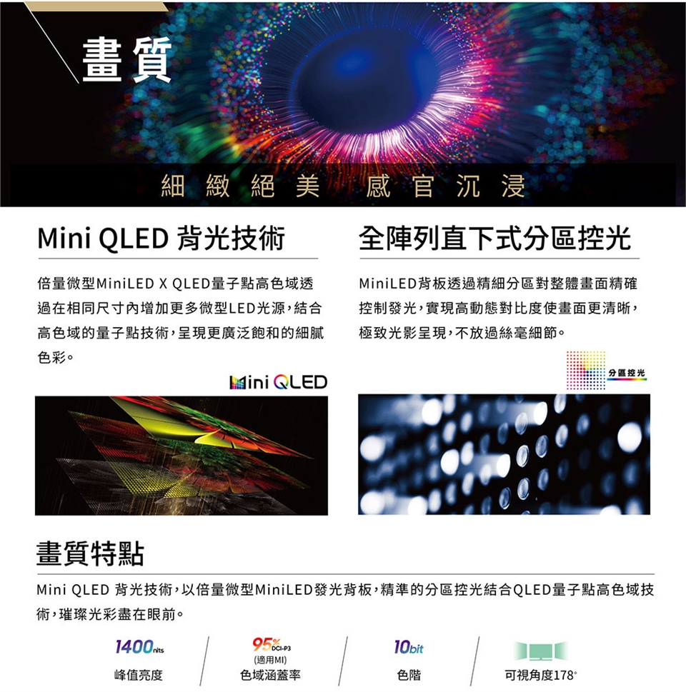 SAMPO 聲寶 65型4K HDR新轟天雷智慧聯網MINI QLED顯示器 QM-65MI3200