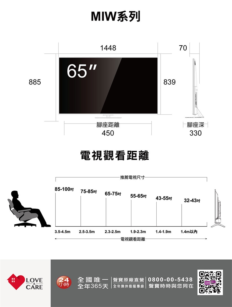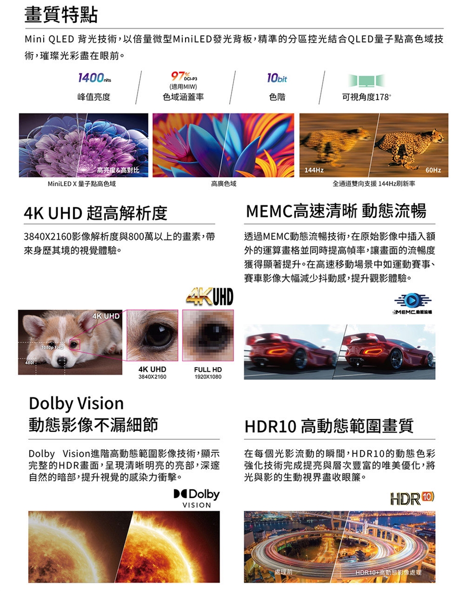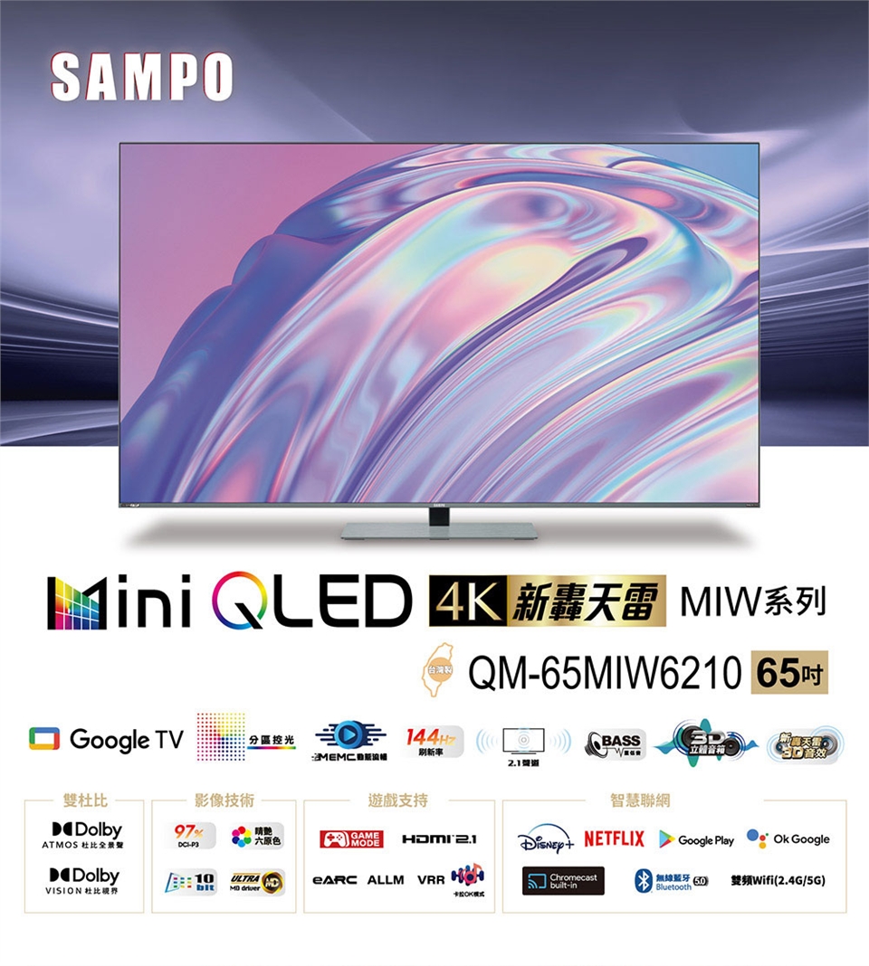 SAMPO 聲寶 65型4K HDR新轟天雷智慧聯網MINI QLED顯示器 QM-65MIW6210