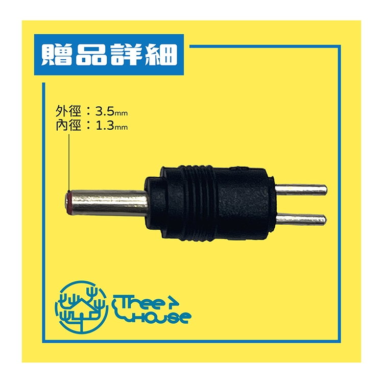 轉接頭:外徑5.5mm接頭(可拔下換外徑3.5mm接頭)