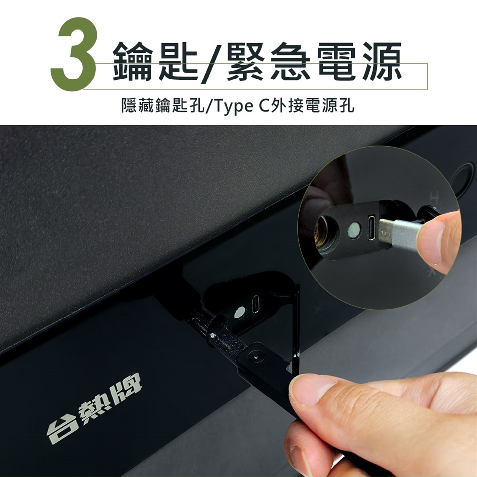◆備有隱藏式鑰匙孔及緊急充電口設置。