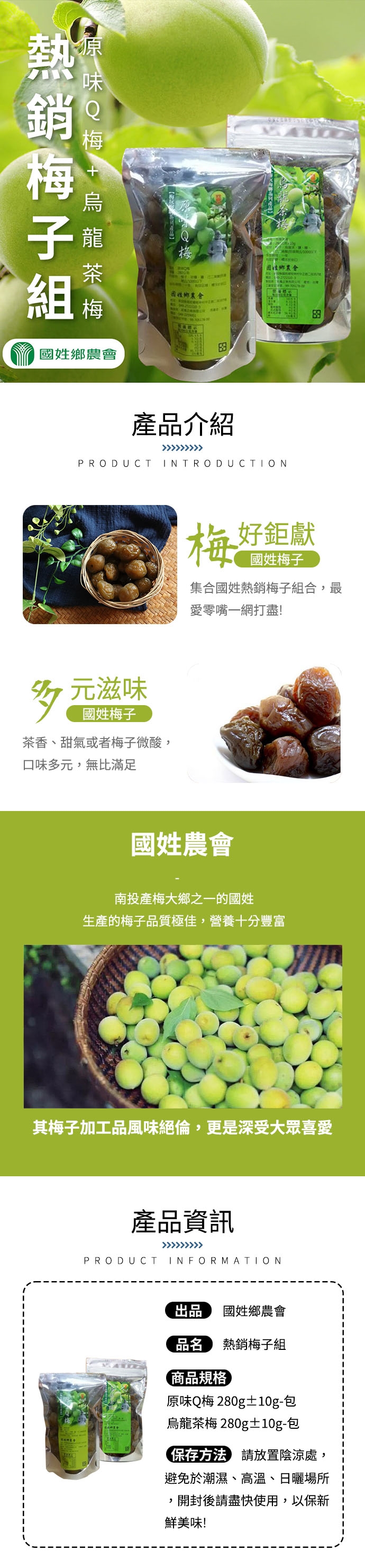 規格:(原味Q梅+烏龍茶梅 )280g±10g-包 (各一包)