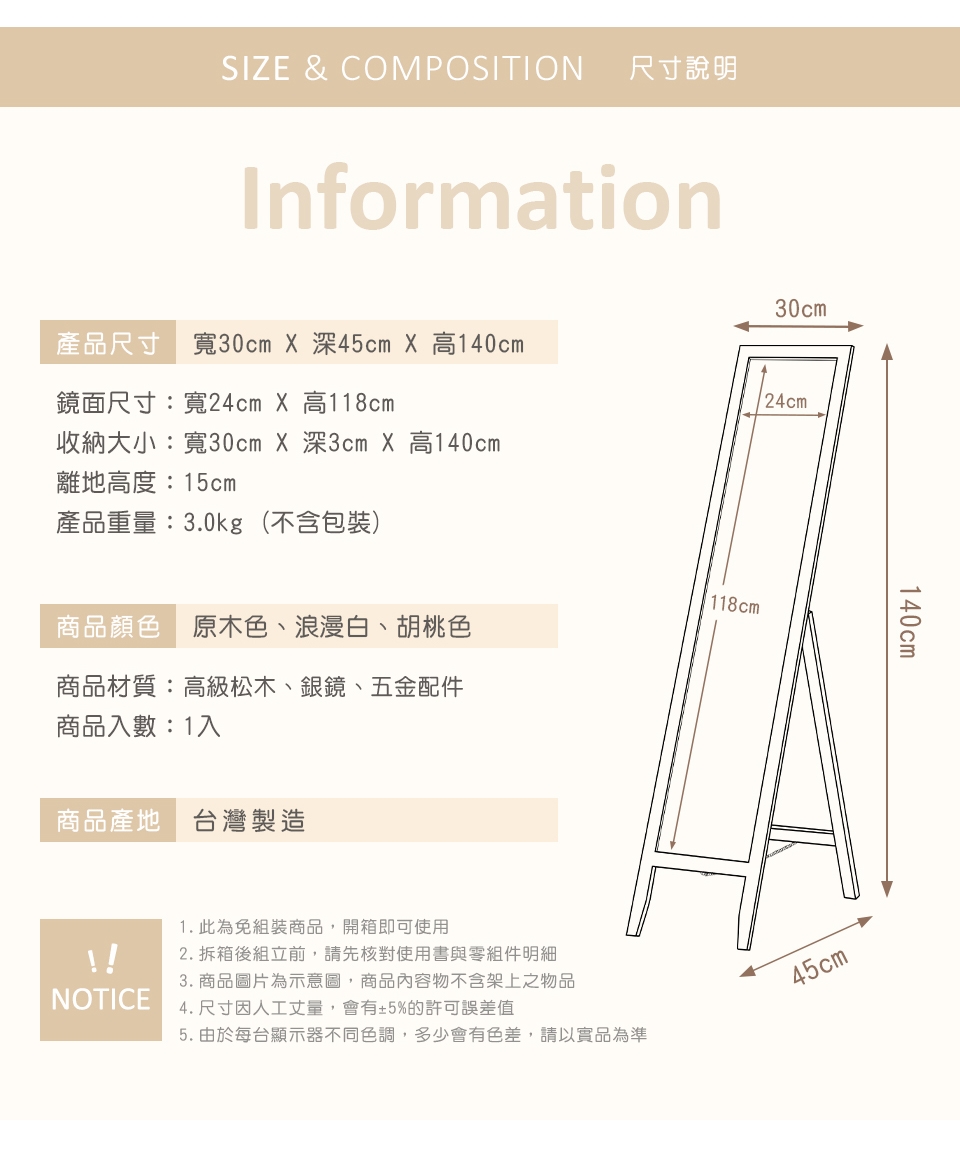 內含:高級松木、銀鏡、五金配件