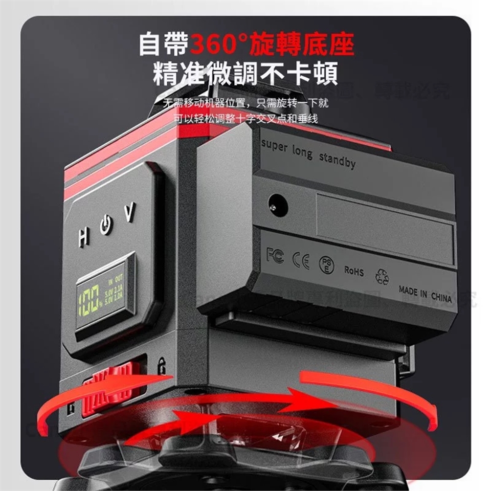 ※ 自帶360旋轉底座 精準微調不卡頓 無需移動機器位置,只需旋轉一下就 可以輕松調整十字交叉點和垂線
