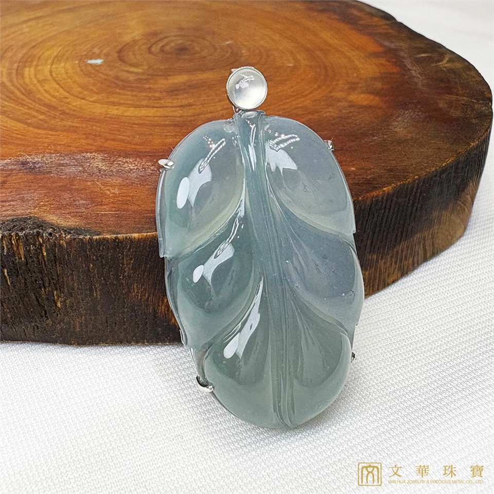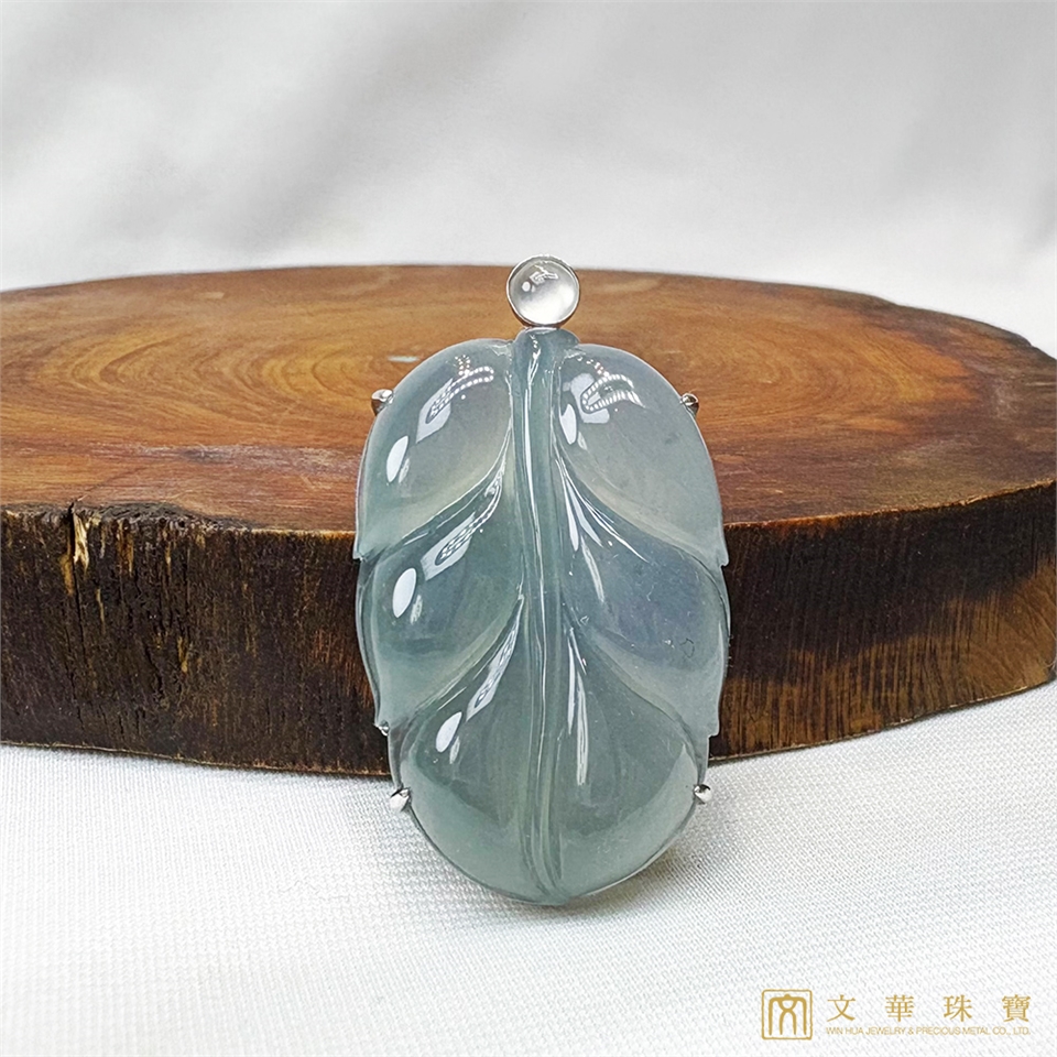 【文華珠寶】翡翠高冰藍水玉葉玉墜 不含鍊