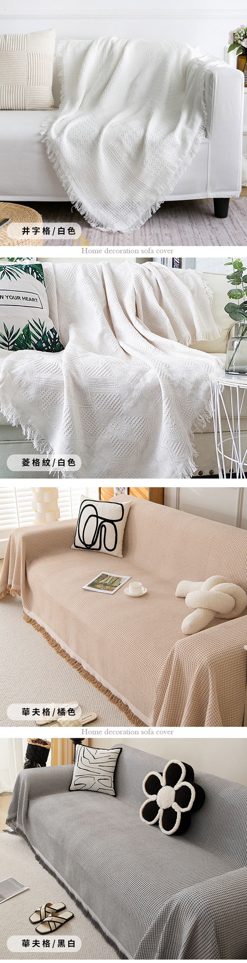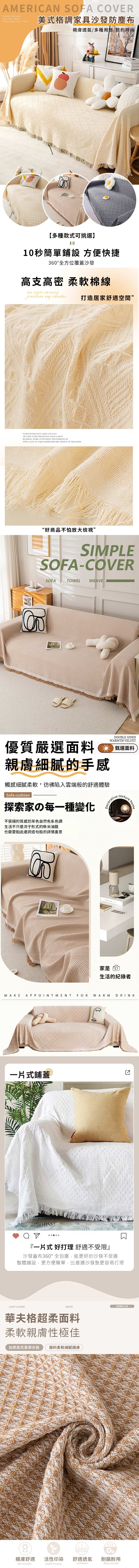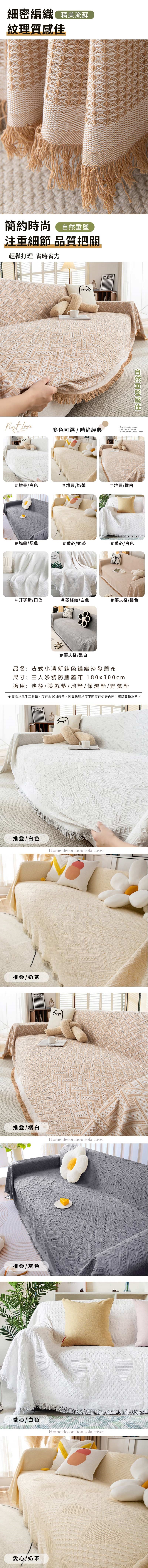 法式小清新純色編織沙發防塵蓋布-三人座