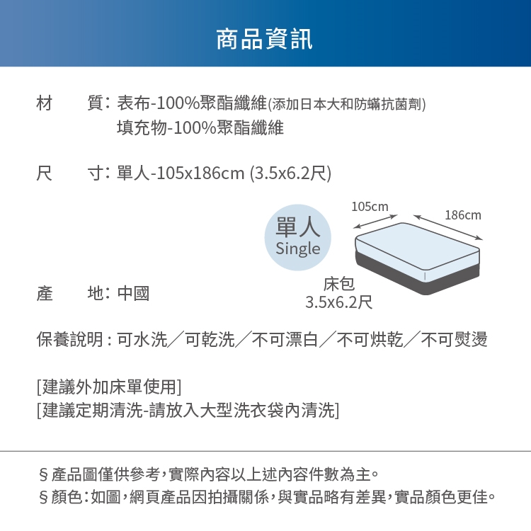 表布:100%聚酯纖維(添加日本大和防蟎抗菌劑)