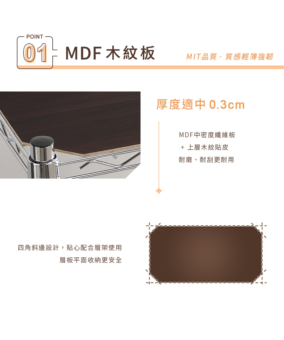 ✦ 耐磨耐用! 採用MDF環保材質,質輕強韌、使用更長久。