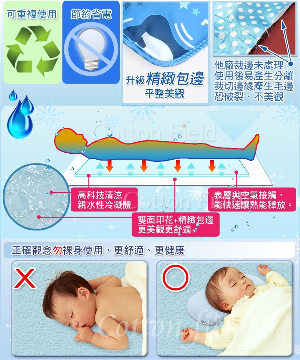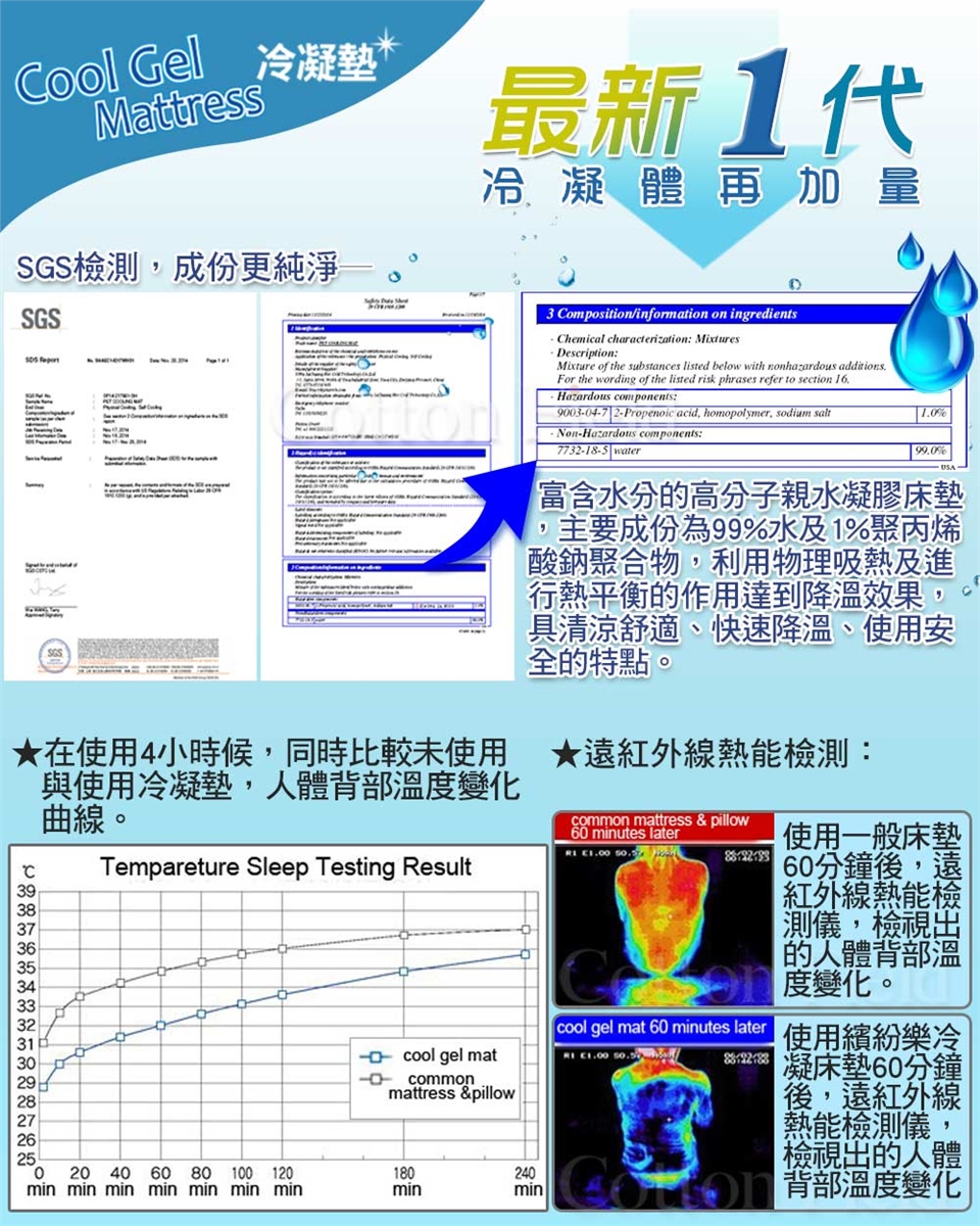 可是偏偏溫度屢創新高,不開冷氣真的就快要人間蒸發了,如何能夠減少使用能源,又不會讓自己受苦難熬,館長發現了一項新科技產品,經過不變改良,全新一代吸水力高分子冷凝墊,清涼效果好,吸熱散熱性物理原理,對人體的吸熱作用良好,涼感效果大提升,真正使用您會感覺到。