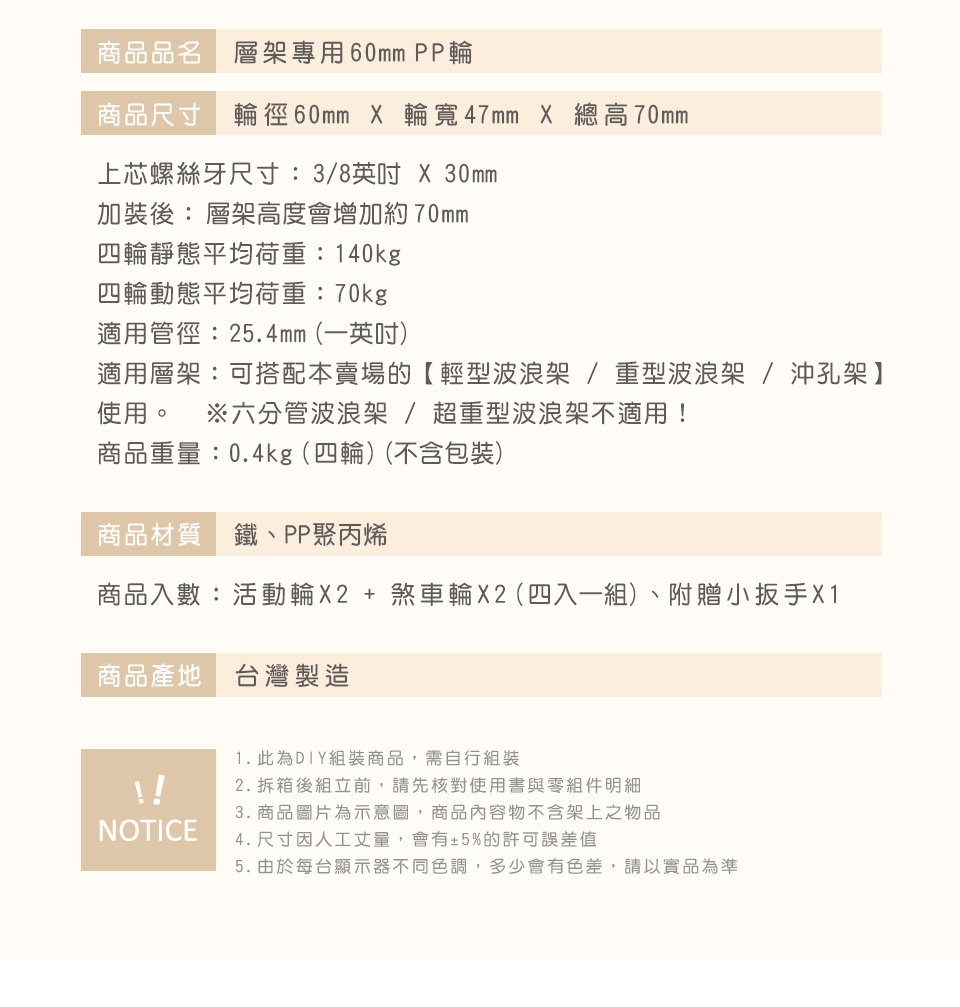 ⚠ 此賣場僅售PP輪,不含層架,層架請另外購買。