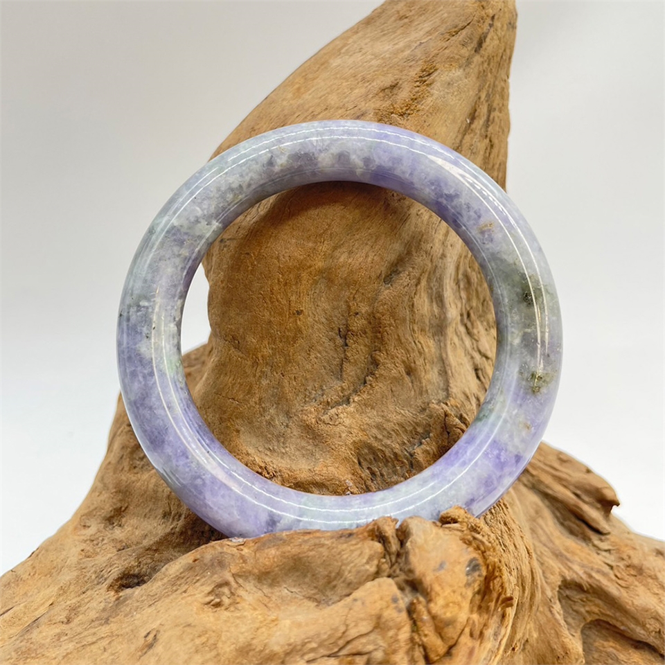 【肌容雪】天然緬甸A貨紫飄綠花翡翠手鐲 編號585 (鐲寬56.5mm #18號)