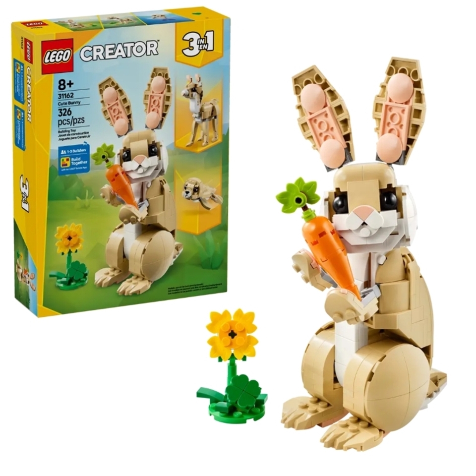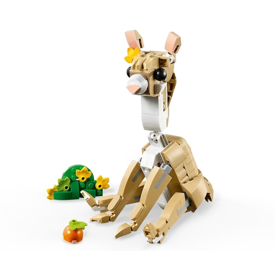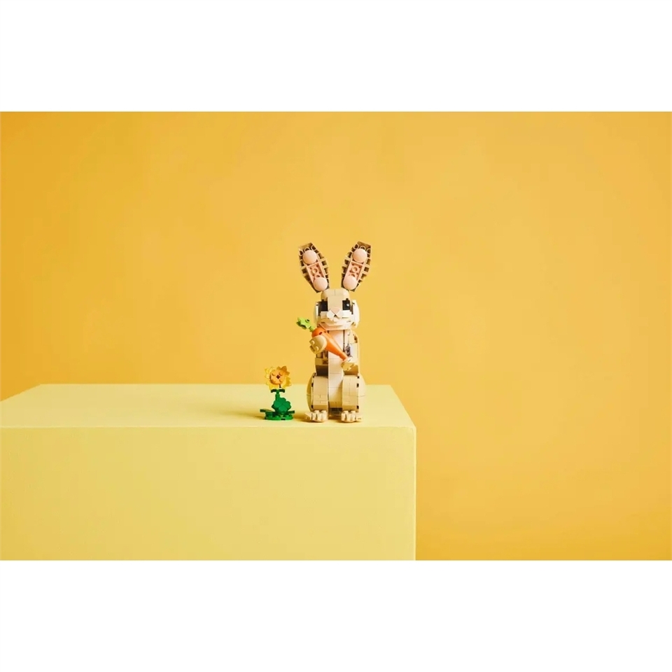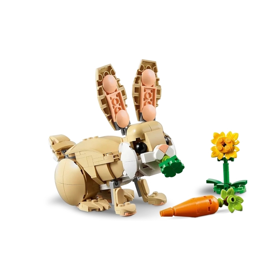 此動物盒組包含兔子兒童玩具,有可動的頭、耳朵、前腿和後腿,能用 2 條腿或 4 條腿站立,並配有向日葵與紅蘿蔔。