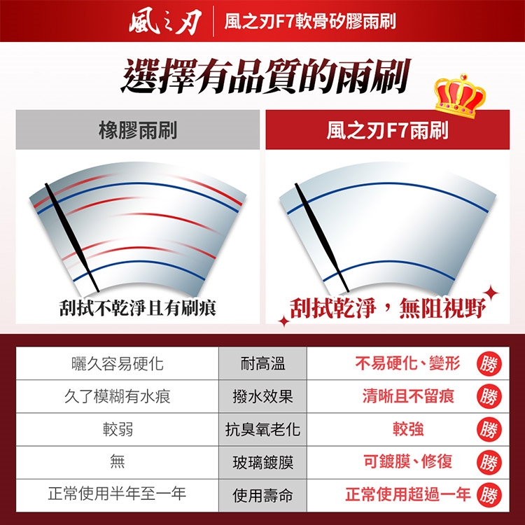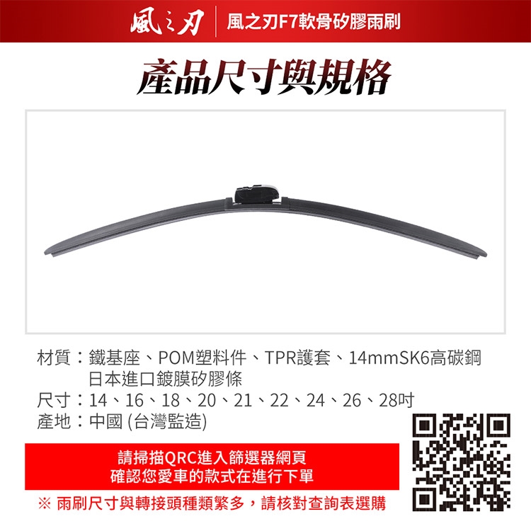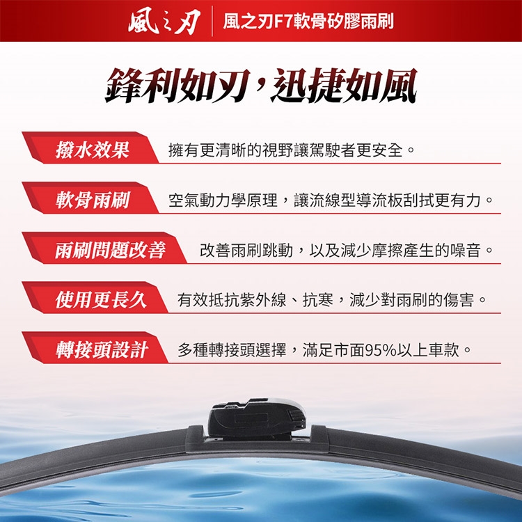 【風之刃】F7軟骨矽膠雨刷-專用款(轉接頭+雨刷)1組