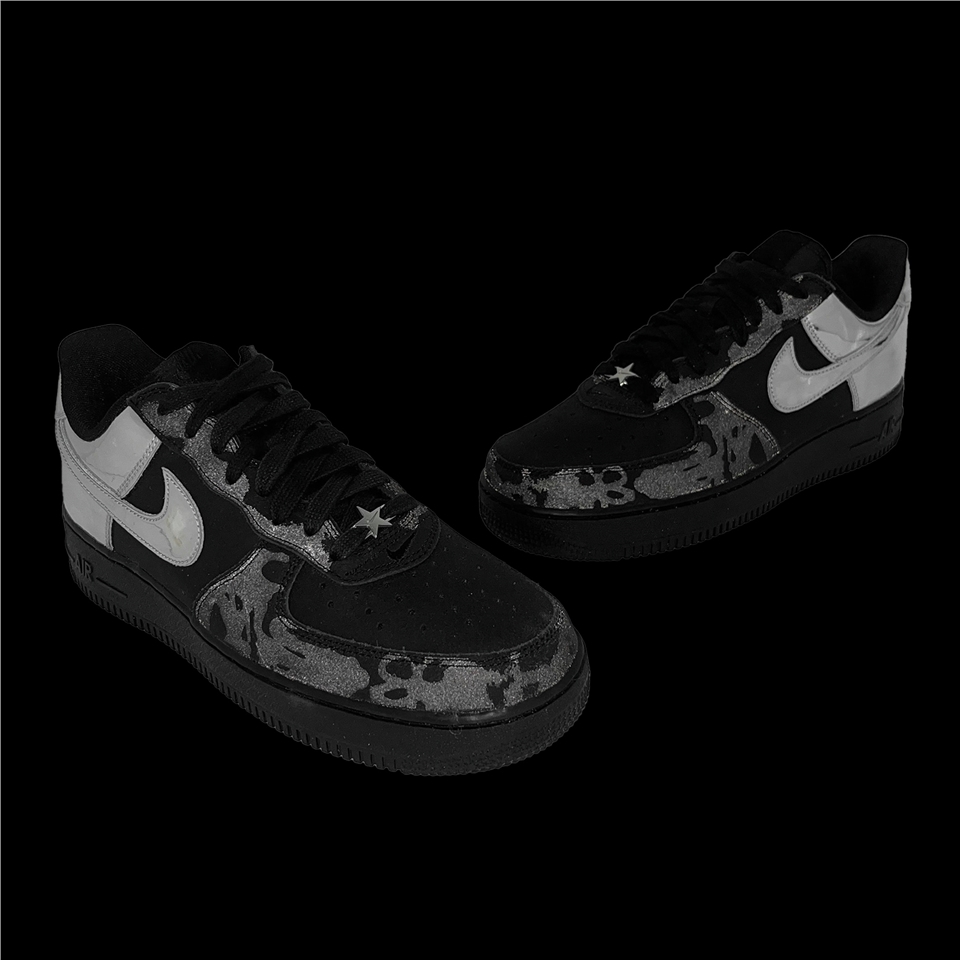 * 採用鍍鉻感裝飾、上蠟鞋帶和星形鞋帶裝飾,搭配同色系塗鴉圖案,在反光下展現完整迷彩圖案,展現未來感風格。