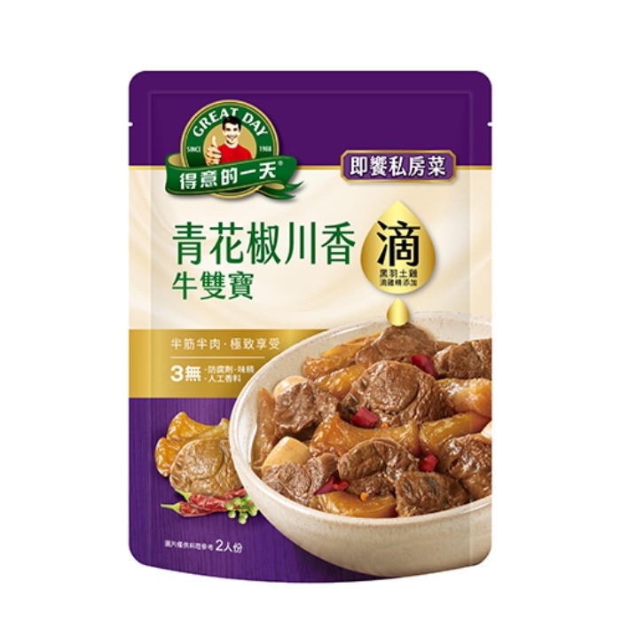 商品名稱 得意的一天青花椒川香牛雙寶350g