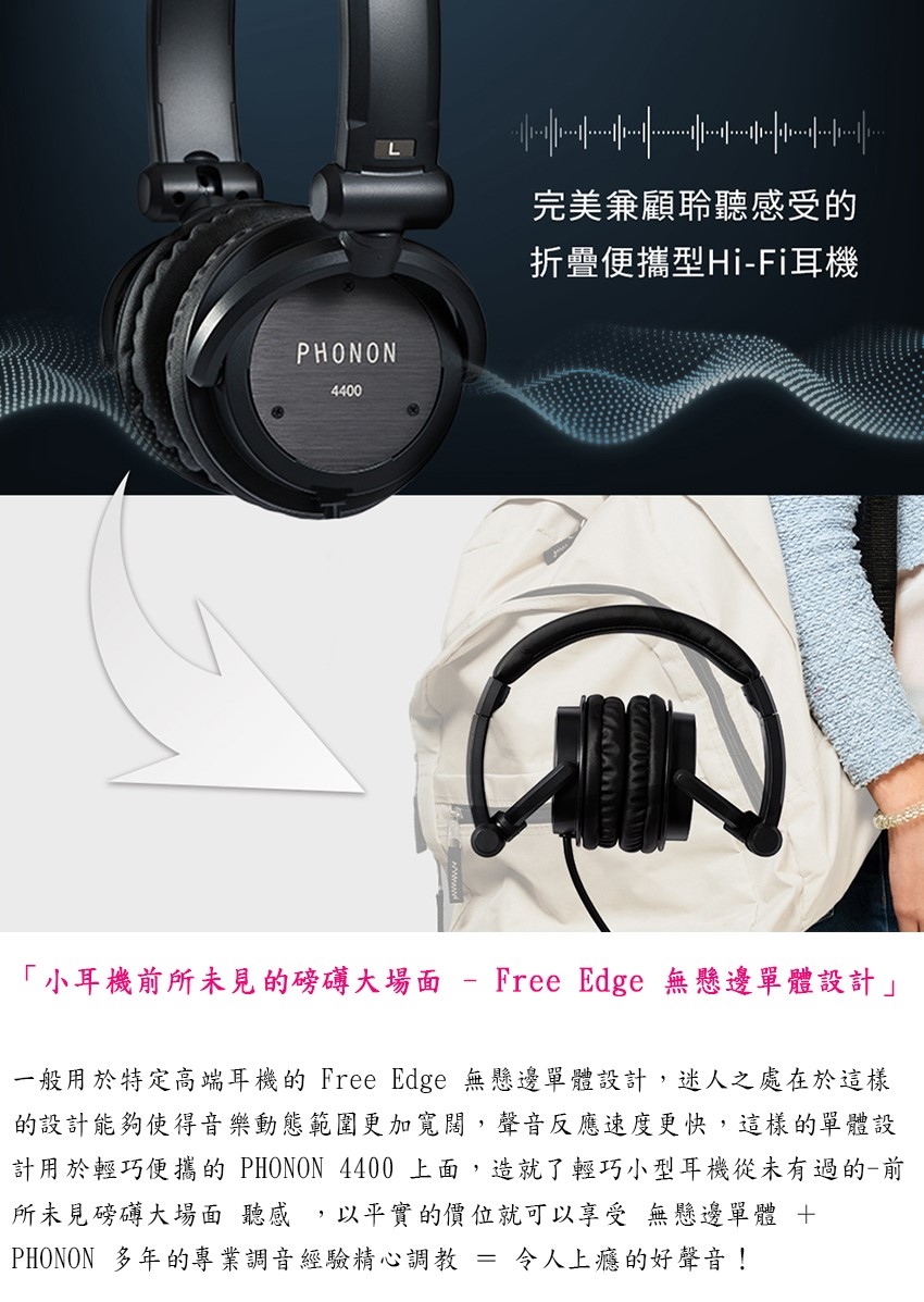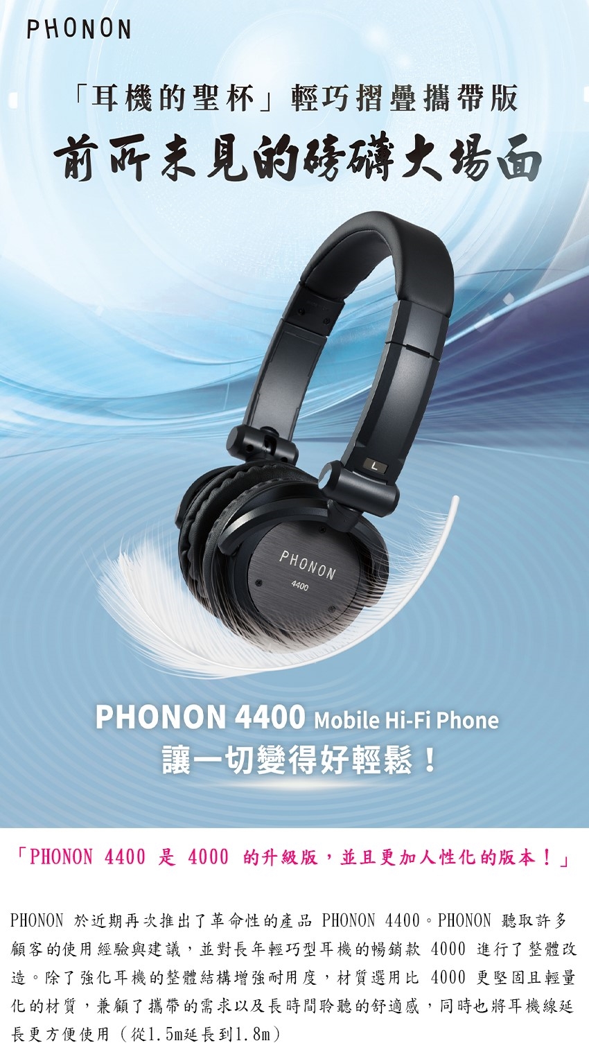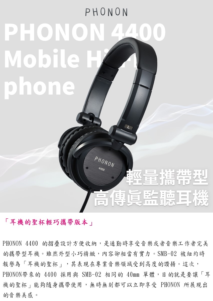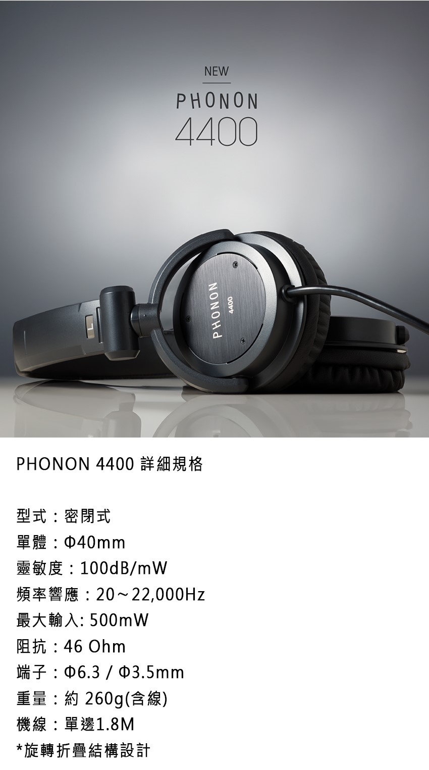 日本 Phonon 4400 輕量攜帶型高傳真監聽耳機/耳罩式專業級耳機