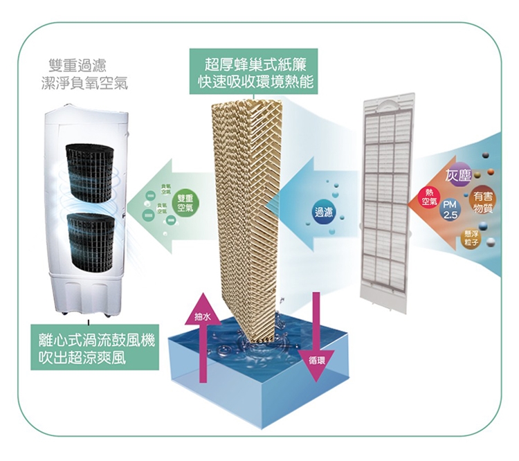 三重紙簾雙重過濾,快速吸熱迅速排冷降溫