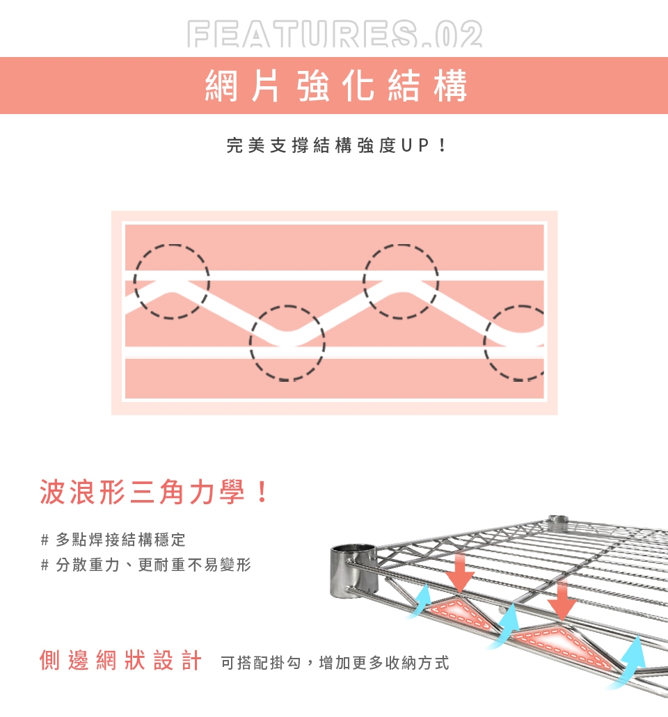 ✓ 網片側邊採三角力學設計,強化結構、提升整層支撐力更加耐重。
