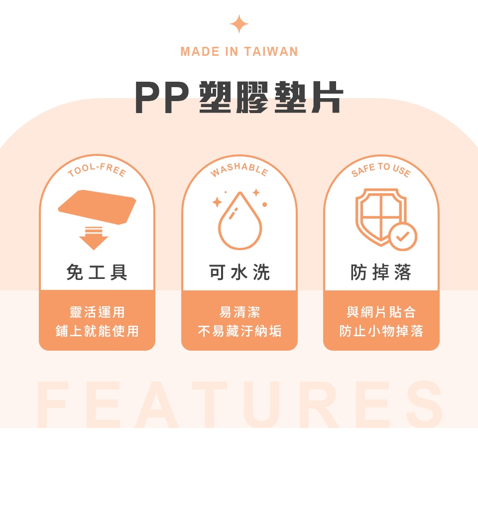 ✦ 耐磨耐用! 採用優質PP材質,質輕強韌、使用更長久。
