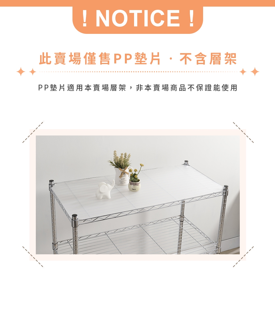 ⚠ PP墊片適用本賣場層架,非本賣場商品不保證能使用。