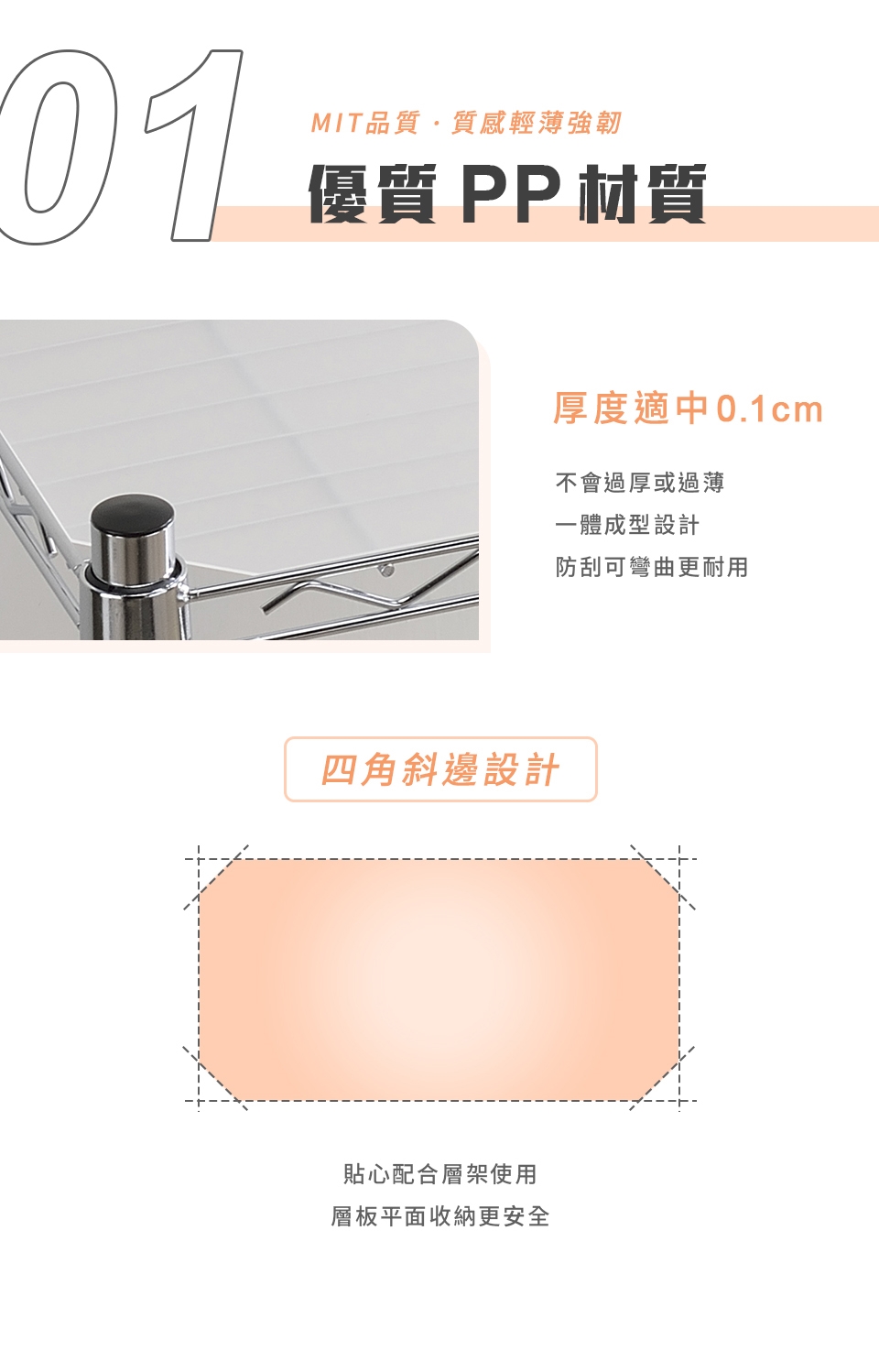 ✦ 四角斜邊! 專為層架設計,穩定物品擺放,防止掉落。