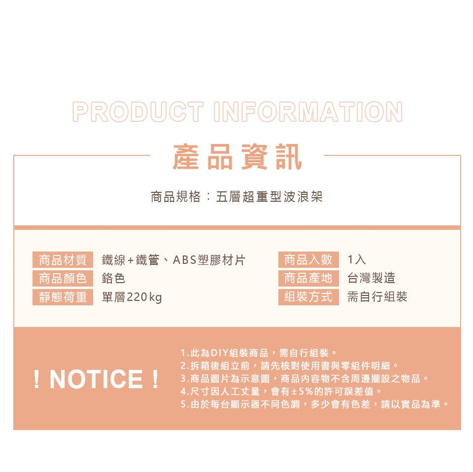✓ 高承重層網,單層靜態平均荷重可達220kg,安心放置、穩固耐用。
