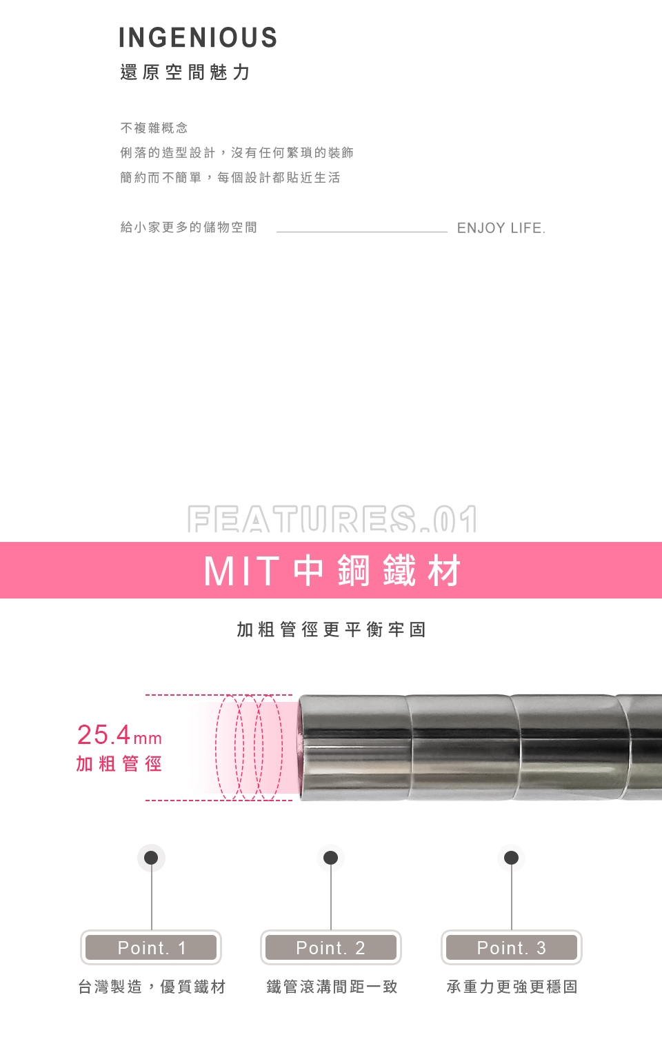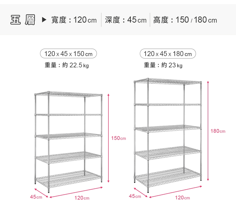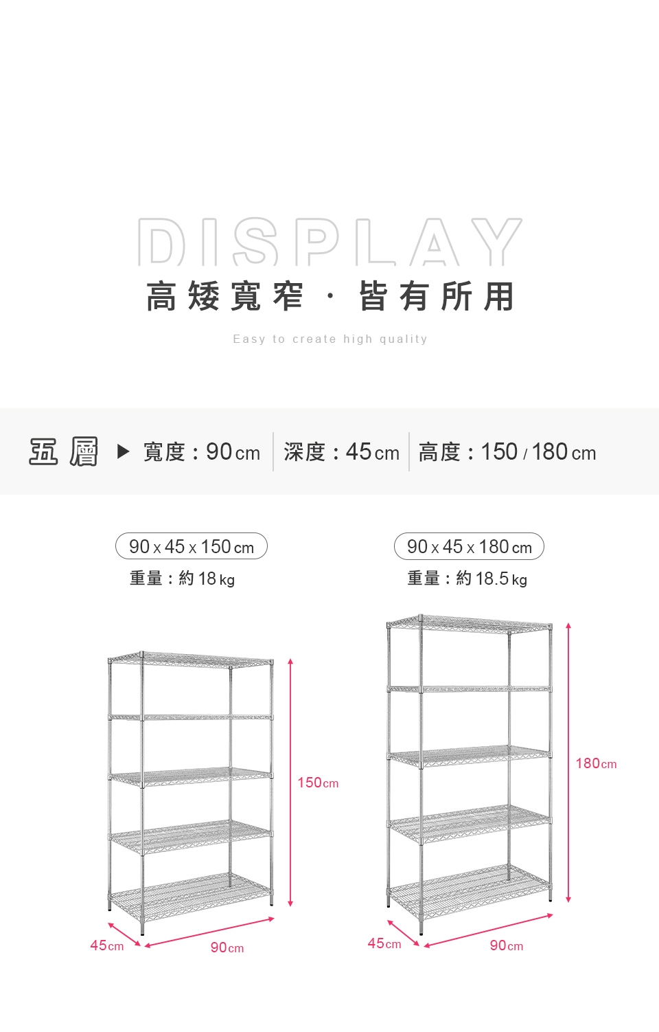 質感鐵力士層架,嚴選MIT中鋼鐵材,表面多重鍍銘、電鍍處理,呈現高質感明亮色澤,防鏽抗腐蝕、承重力強,堅固耐用!