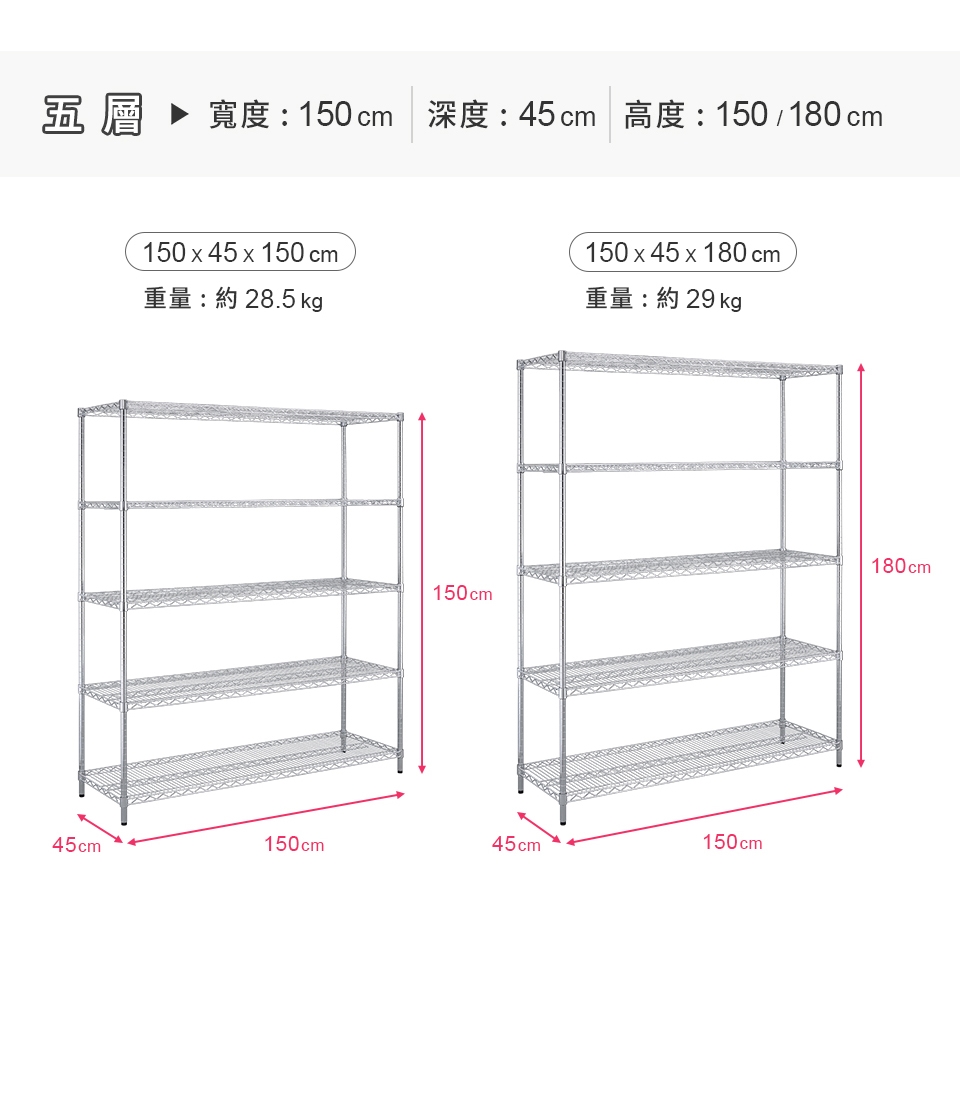內容件數:超重型五層電鍍置物架x1,共1入/組