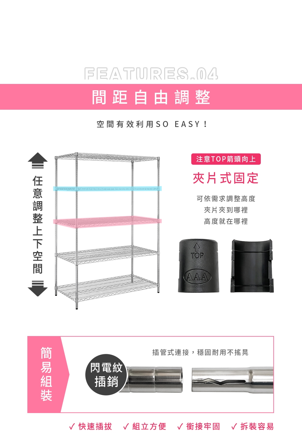✓ 層架間距可任意調整,讓你隨心所欲、自由規劃居家空間,輕鬆享受收納樂趣。