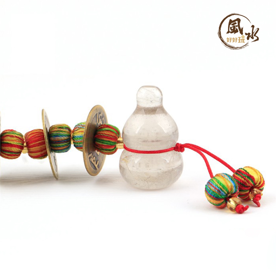 將「白水晶五帝錢葫蘆吊飾」掛於屋宅或隨身包包,可藉五帝鴻運,清除穢煞之氣,護佑安康,凝聚福氣善緣。