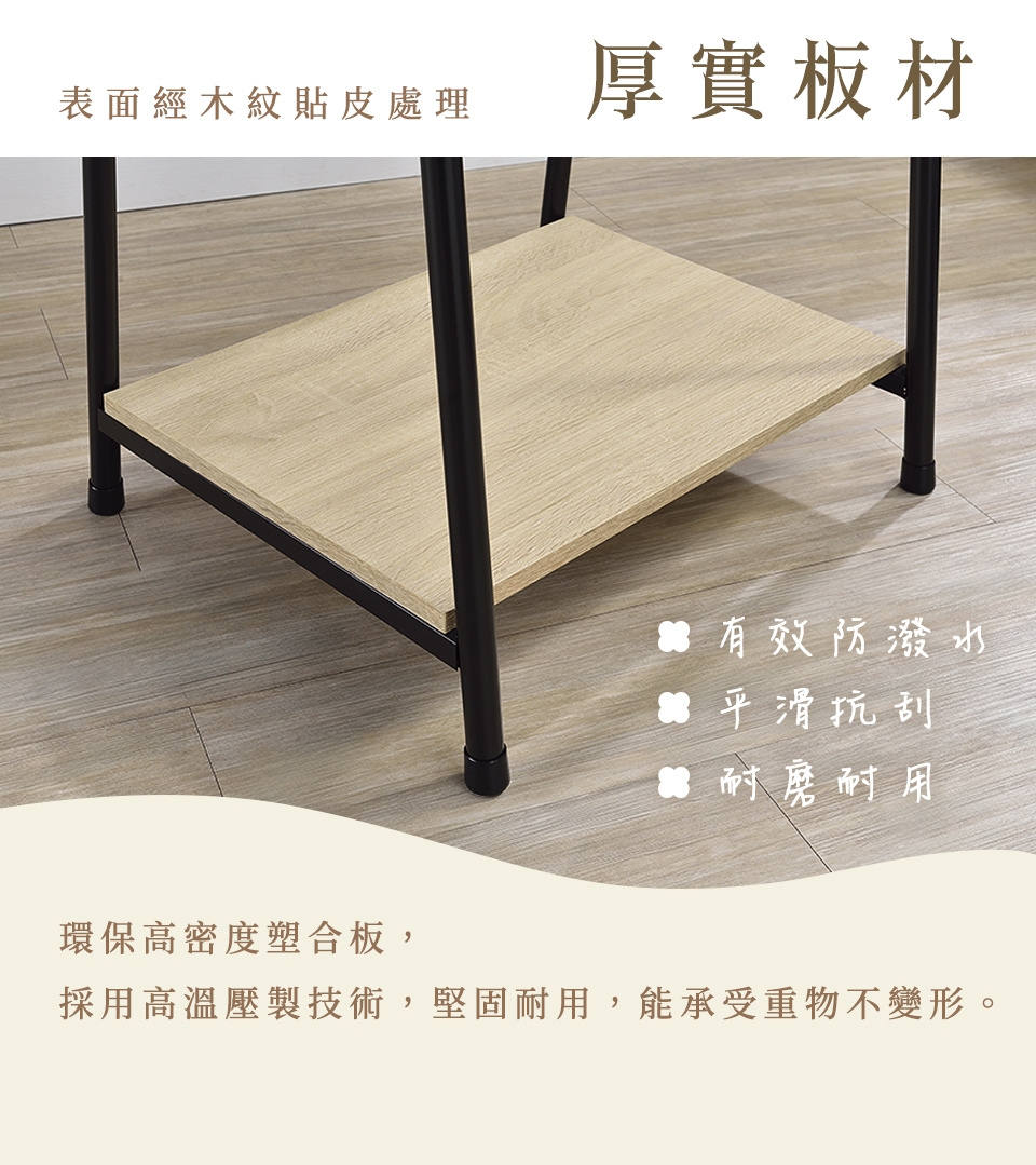 材質:烤漆鐵管、高密度塑合板+木紋貼皮