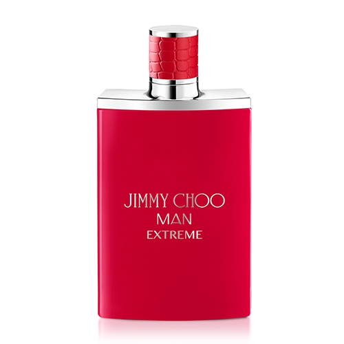 瓶身上「Jimmy Choo Man Extreme」的銀色字樣與紅色印花皮革紋理瓶蓋相得益彰,展現香氛內涵的力量與熱情。