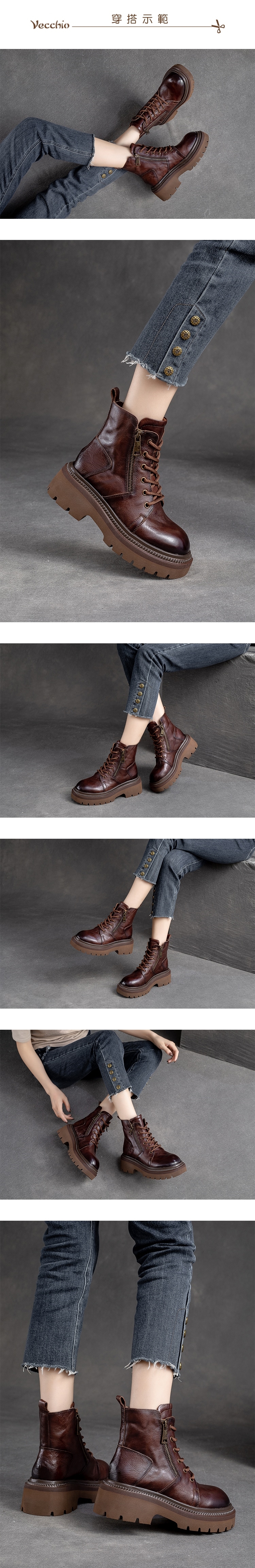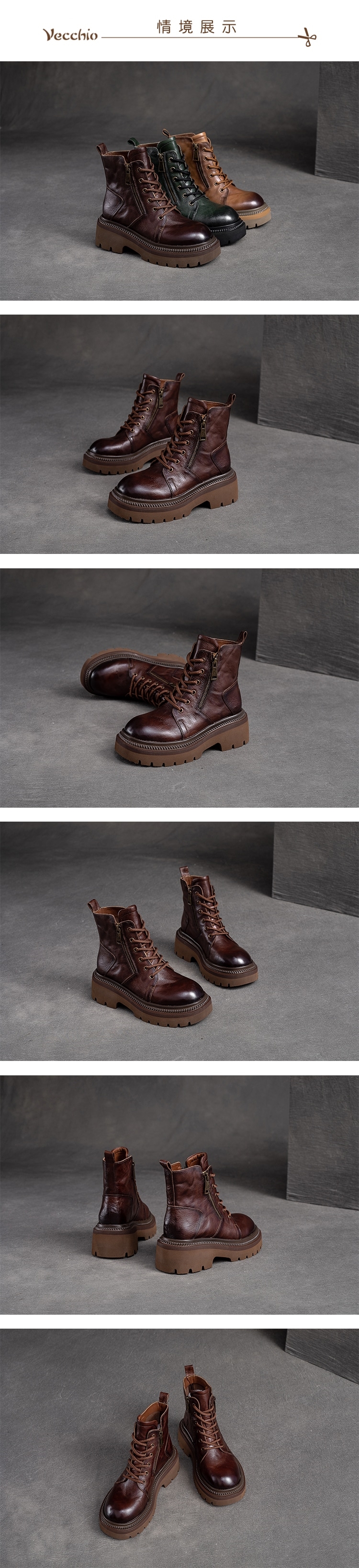 【VECCHIO】全真皮手工擦色馬丁靴/全真皮頭層牛皮復古手工擦色經典馬丁靴 女鞋 咖