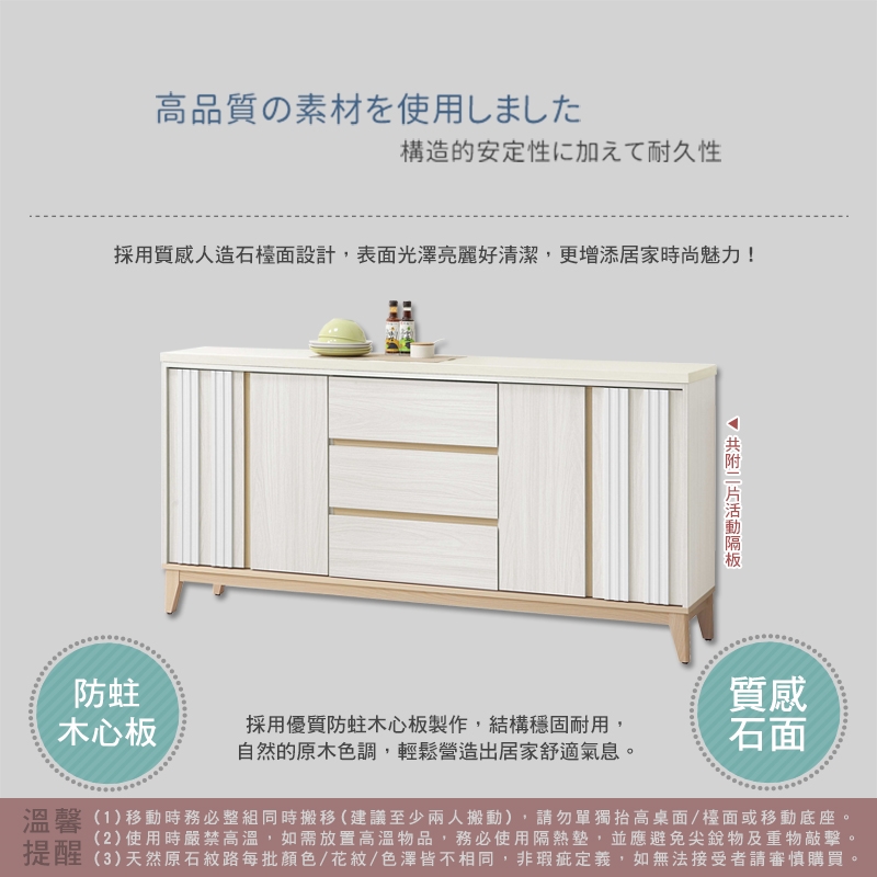 (1)人造石面檯面紋路,每批顏色/花紋/色澤皆不相同,非瑕疵定義,如無法接受者請審慎購買。