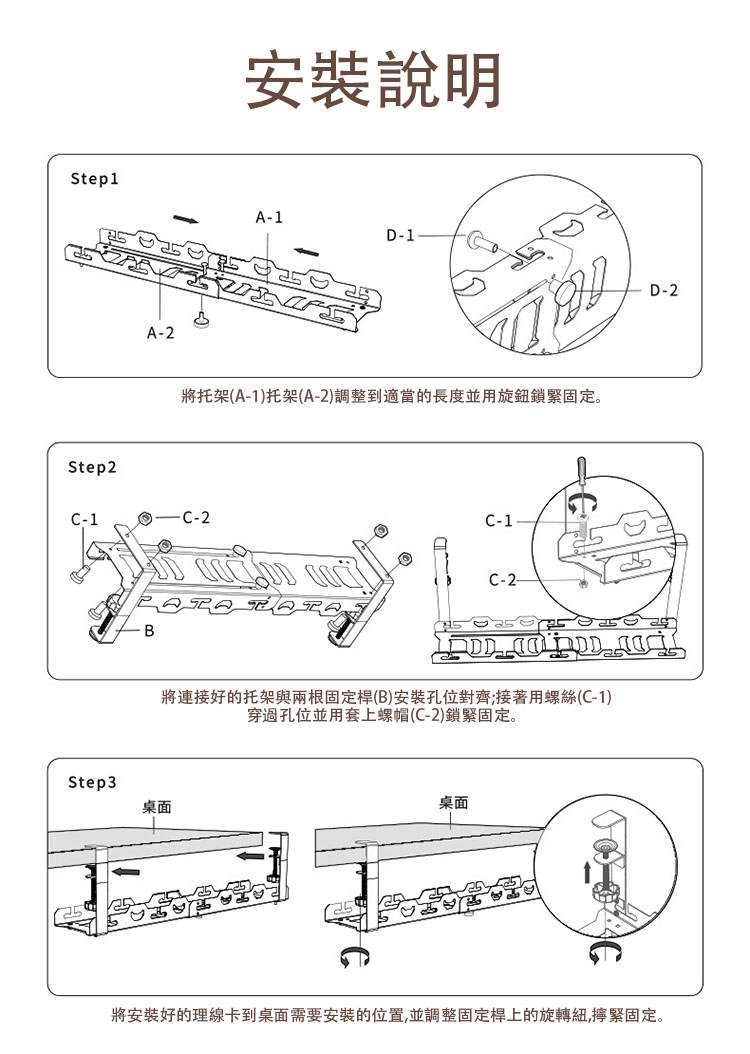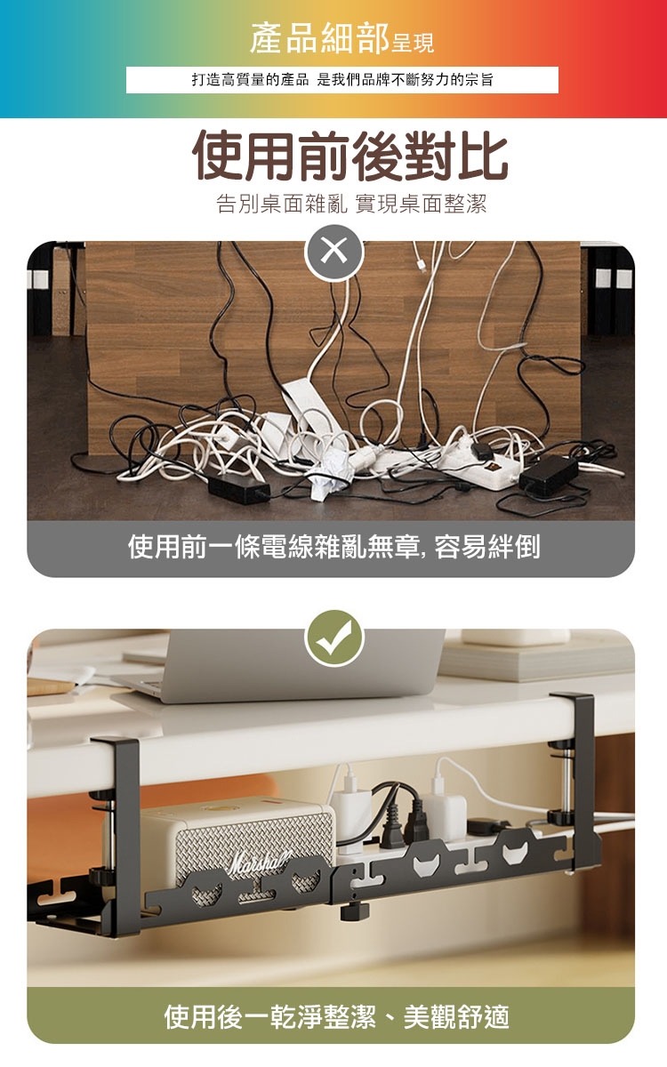 【WIDE VIEW】免打孔桌下理線收納架(整線器 電線收納 延長線收納 桌下理線架 免打孔/LXJ-02H-PF)
